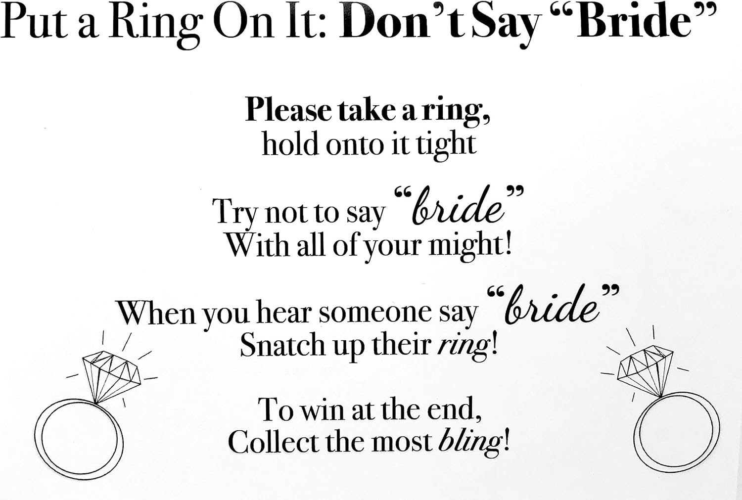 Ring Game Minimalist Bridal Shower Game Don t Say Bride Game
