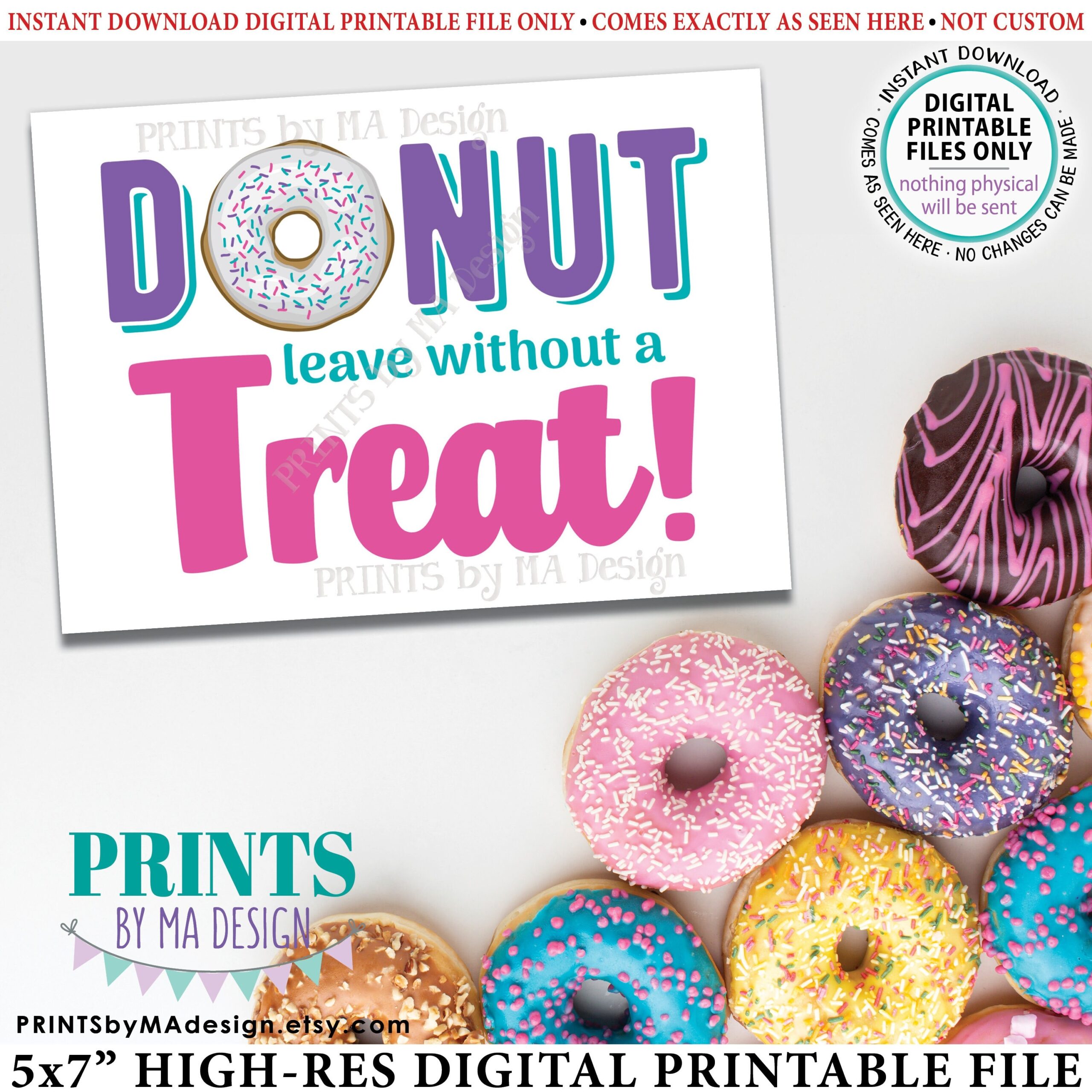 Donut Leave Without A Treat Printable Favor Sign Instant Download Etsy