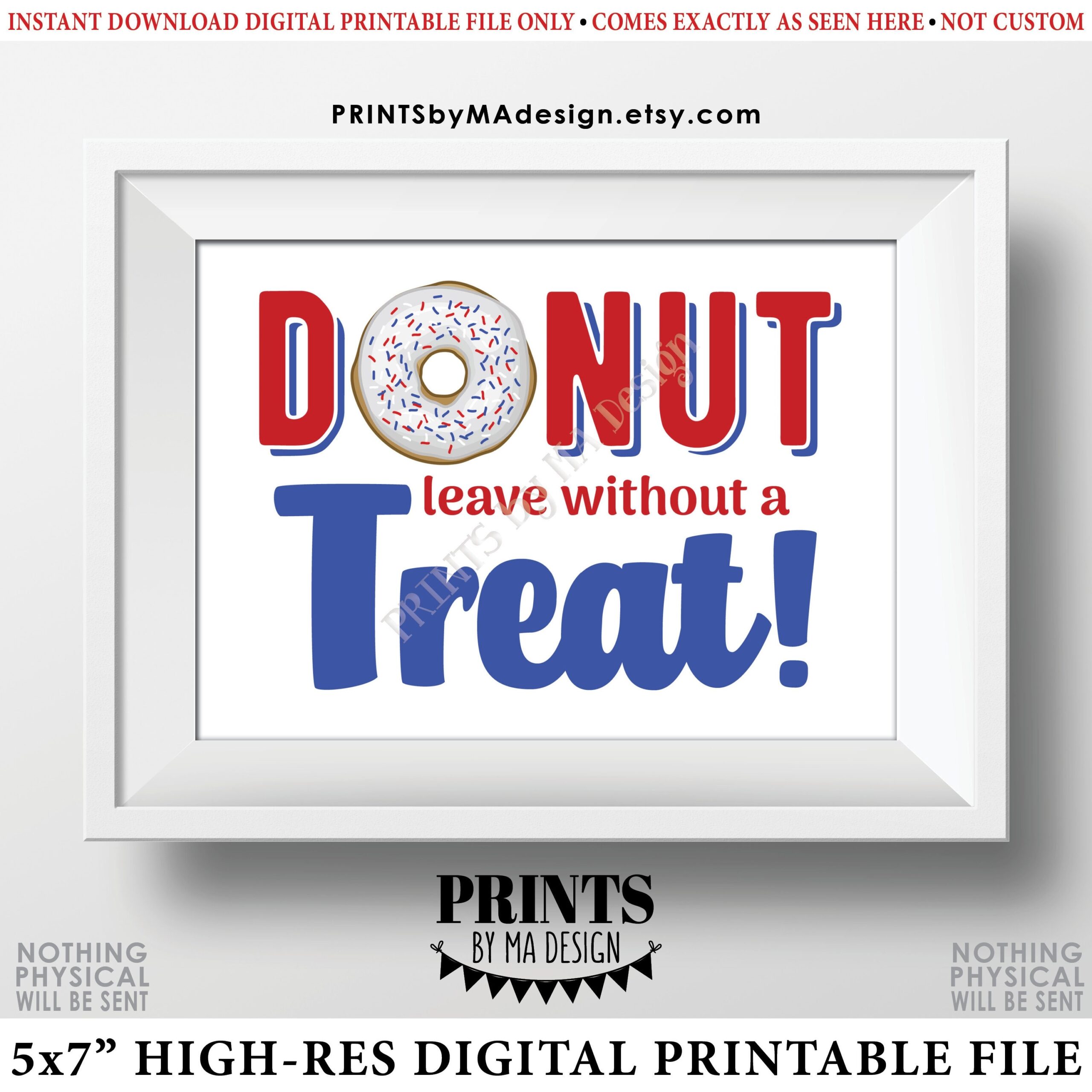 Donut Leave Without A Treat Sign Patriotic Sweet Treats 4th Of July Independence Day Red White Blue PRINTABLE 5x7 Donut Sign