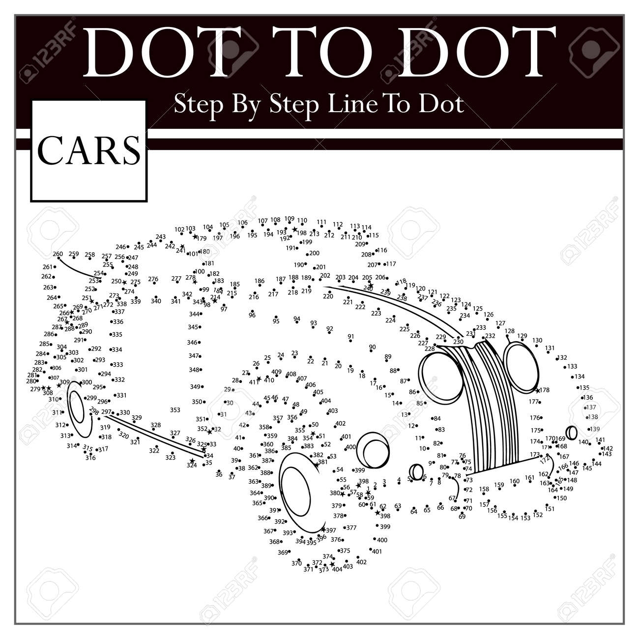 Connect The Dots Kids Cars Puzzle Worksheet Royalty Free SVG