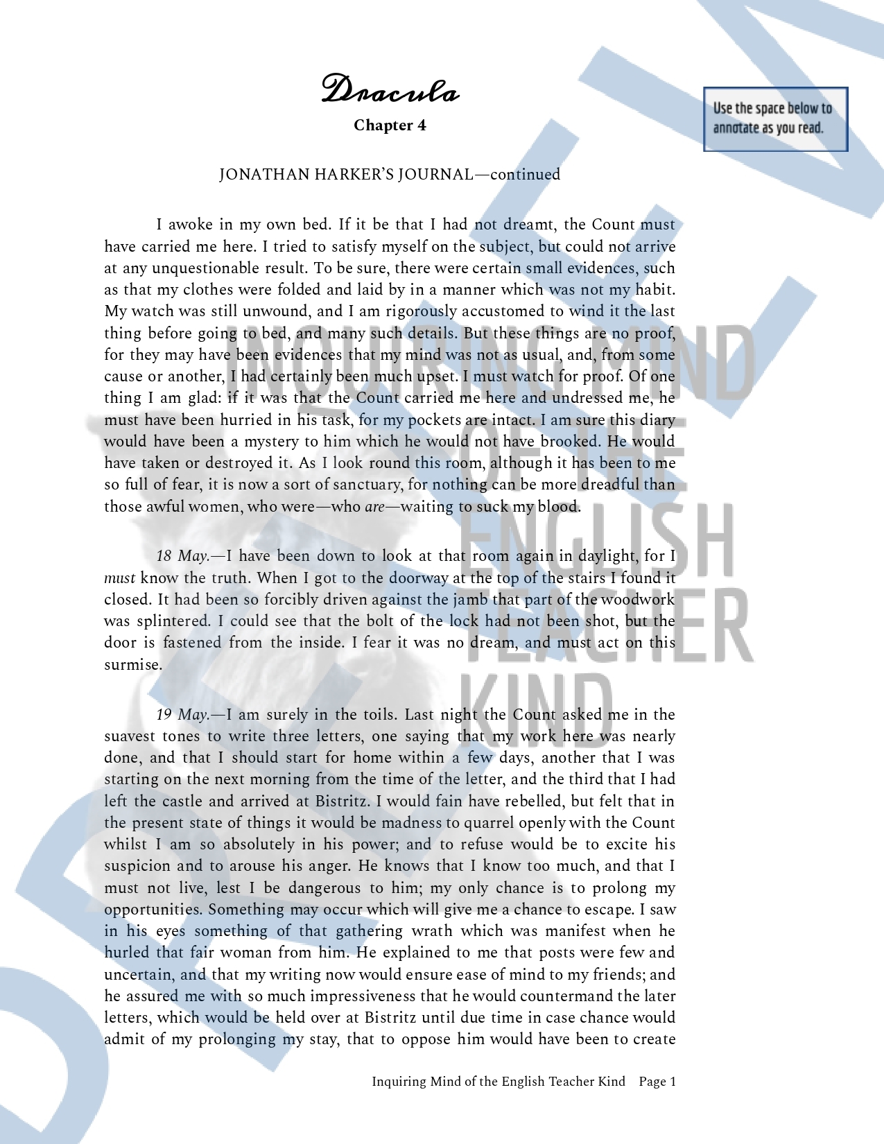 dracula chapter 4 printables