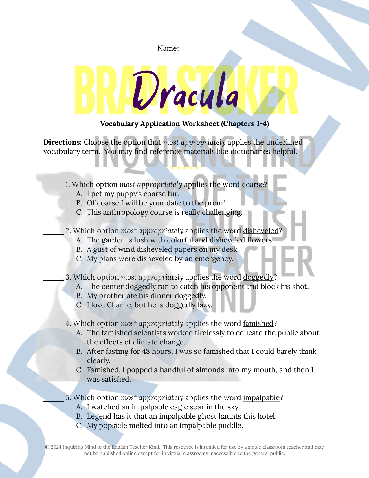 Dracula Chapters 1 4 Quiz Close Reading Worksheets And Vocabulary Games Classful