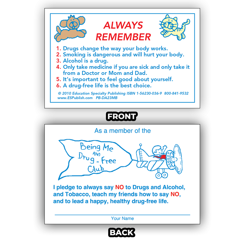 Being Me And Drug Free Pledge Card Prevention And Treatment Resource Press