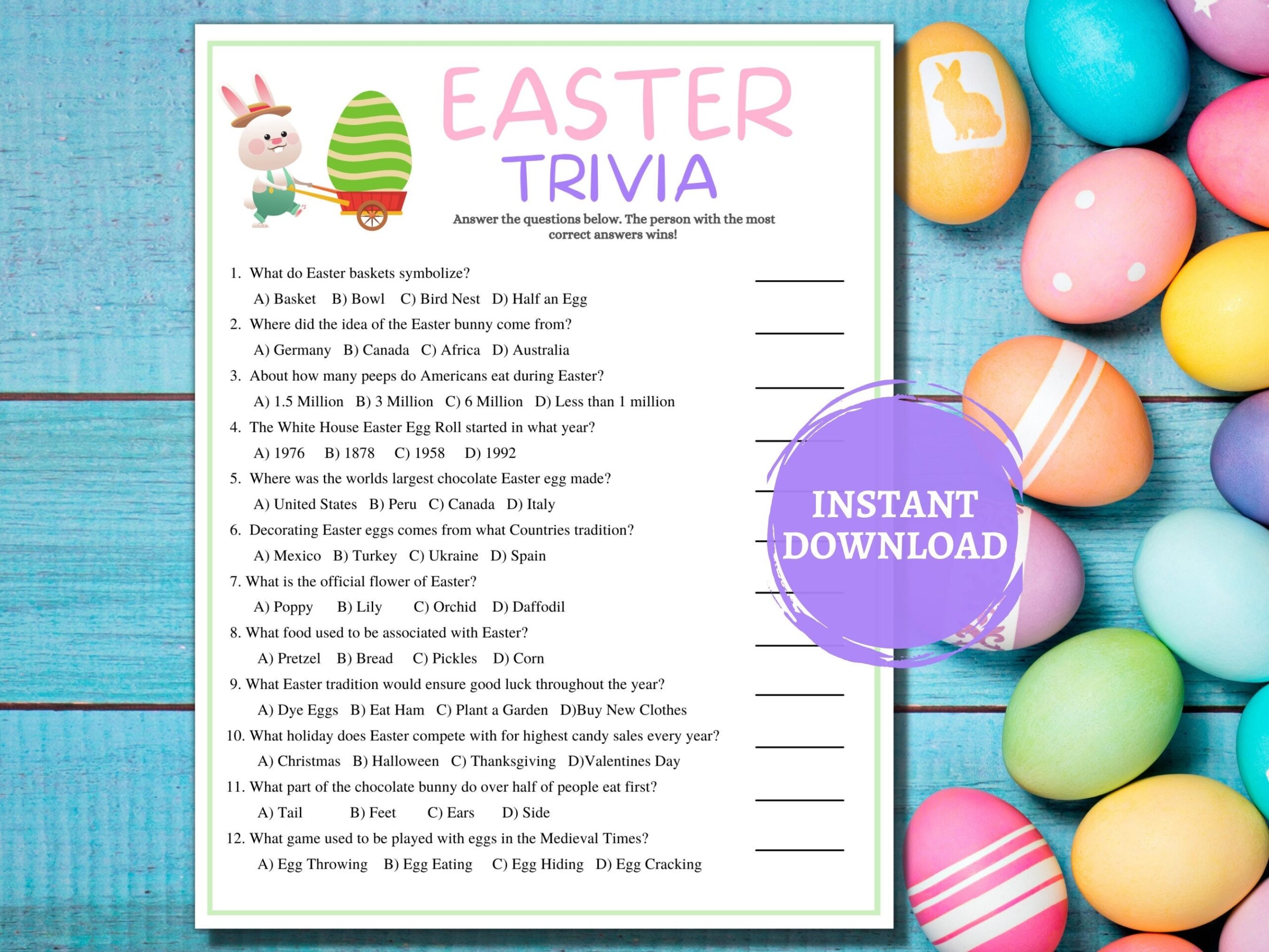 So, why wait? Print out these Easter trivia questions and answers, gather your loved ones, and get ready for a memorable and festive Easter celebration filled with laughter, competition, and joy. Happy Easter!