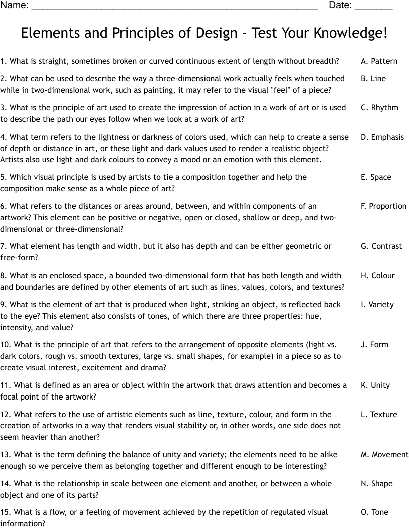 Elements And Principles Of Design Test Your Knowledge Worksheet