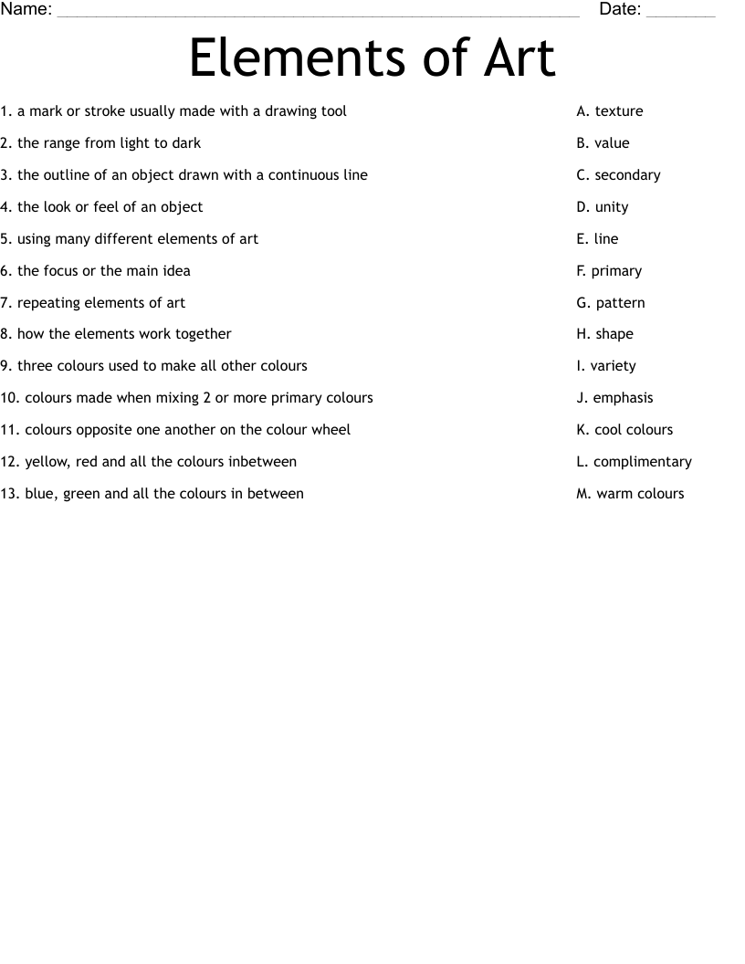 Elements Of Art Worksheet WordMint
