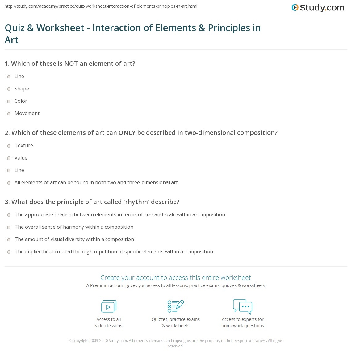Quiz U0026 Worksheet Elements U0026 Principles Of Art U0026 Design Study