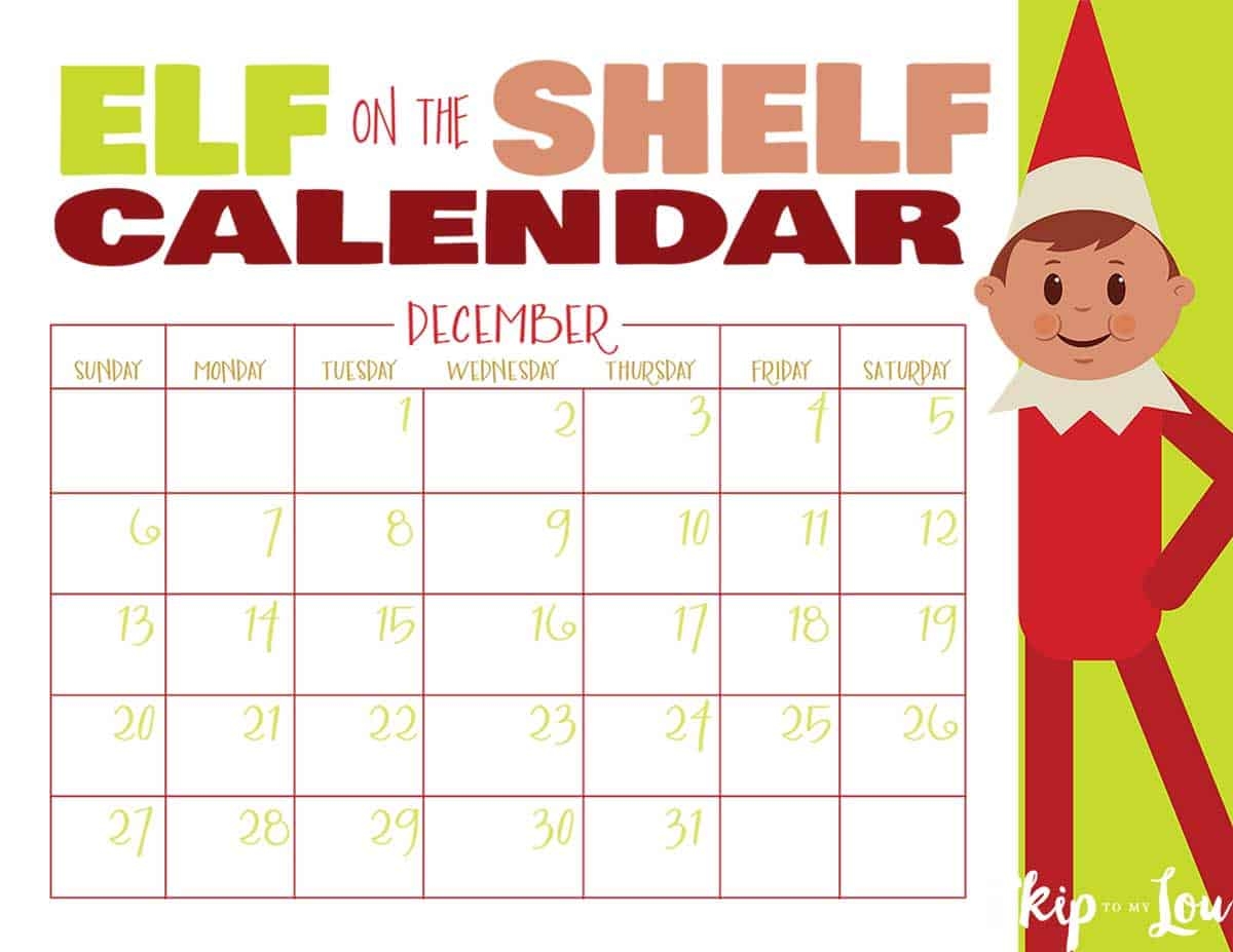 FREE Printable Elf On The Shelf Calendar UPDATED 2022 Skip To My Lou