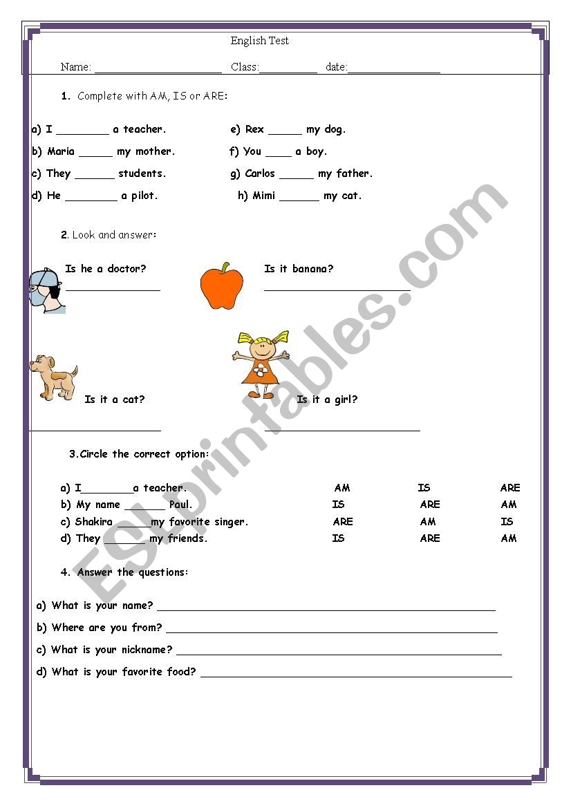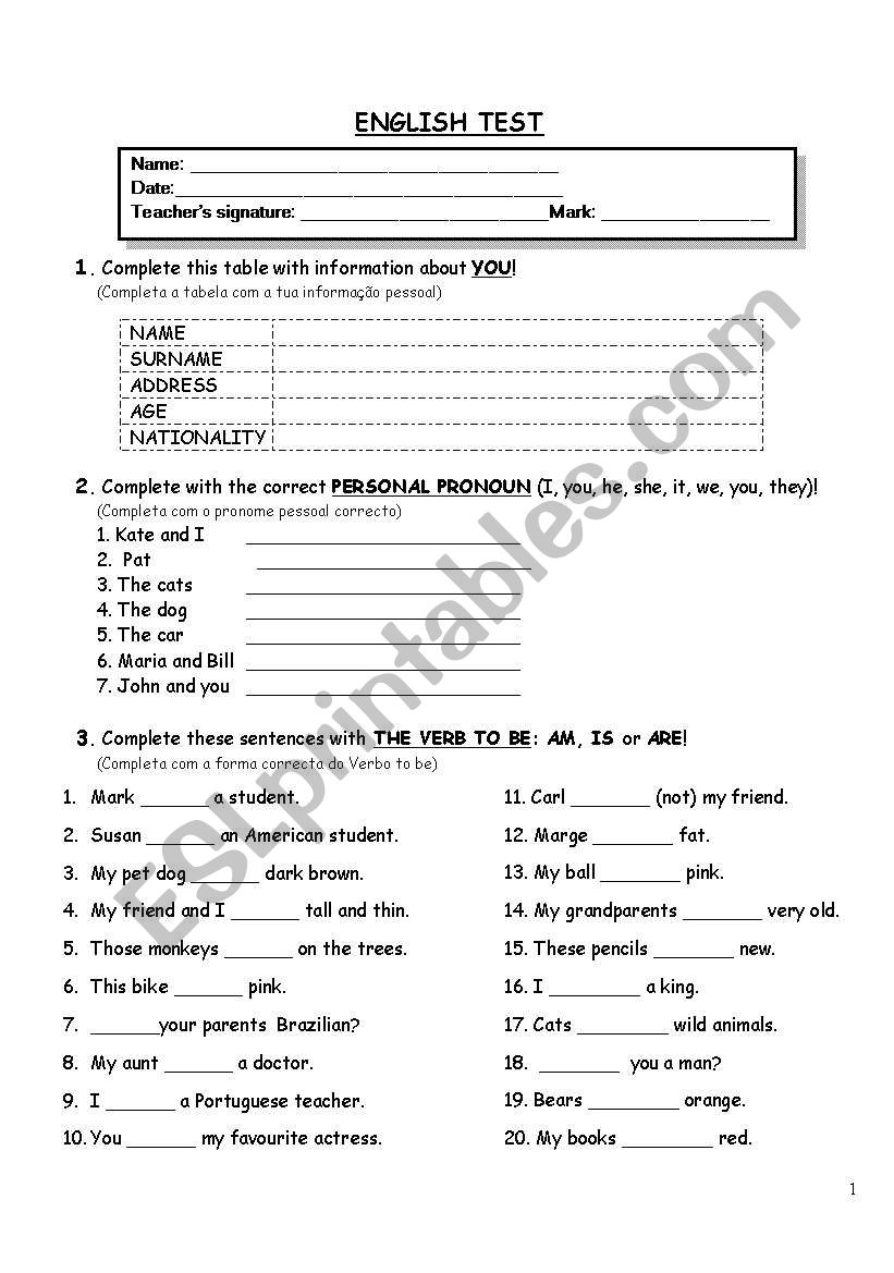 ENGLISH TEST BEGINNERS ESL Worksheet By Mary1481