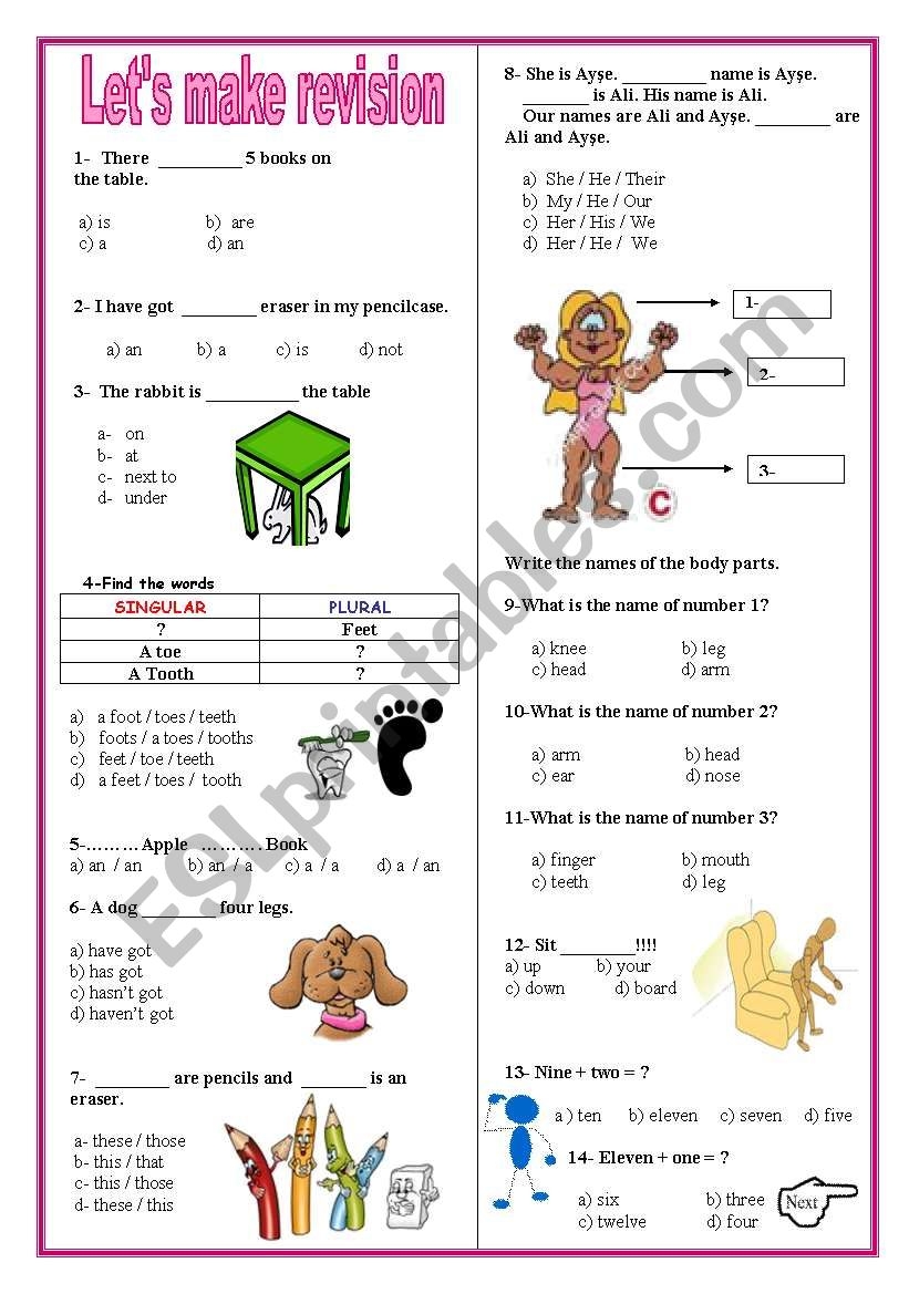 Revision Test For Beginners ESL Worksheet By Spring Worksheets Library