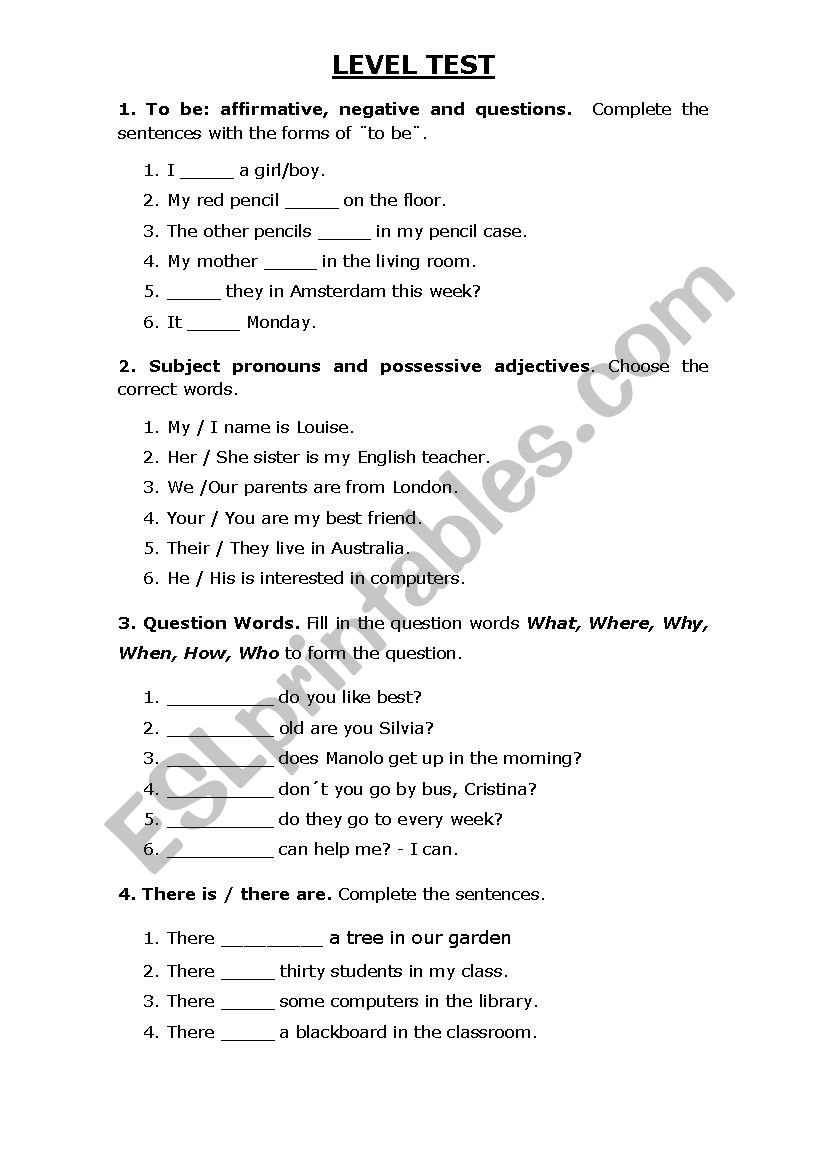 Elementary Level Test ESL Worksheet By Pinarkrts