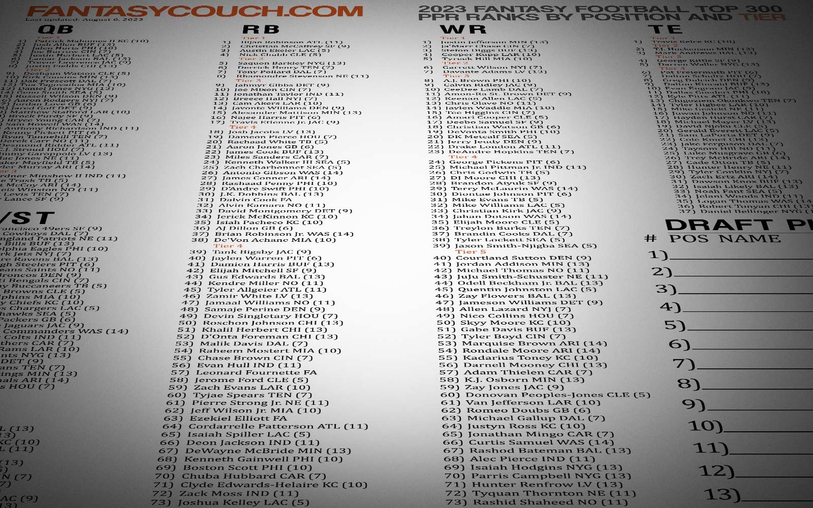 2023 Fantasy Football Rankings Cheat Sheets PPR Non PPR Depth Charts ESPN
