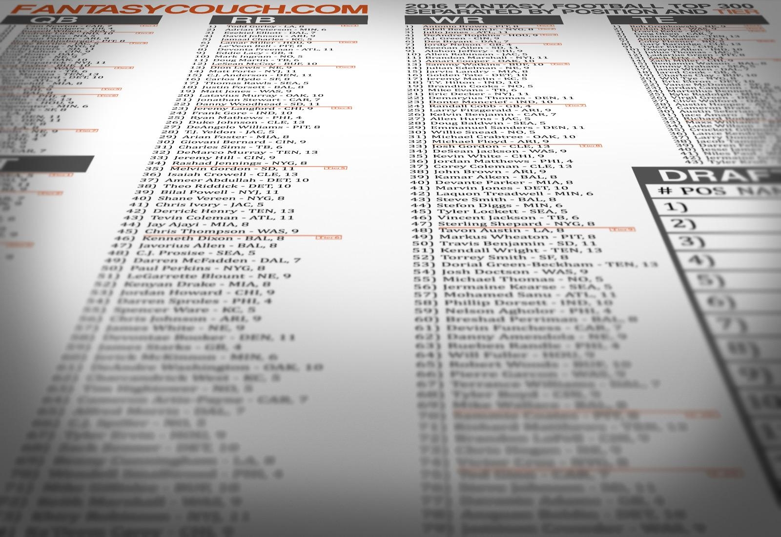 Fantasy Football Top 300 Printable