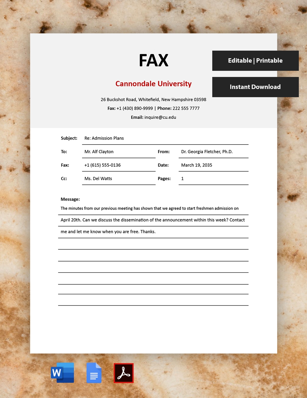 School Fax Cover Sheet Template In PDF Word Google Docs Pages