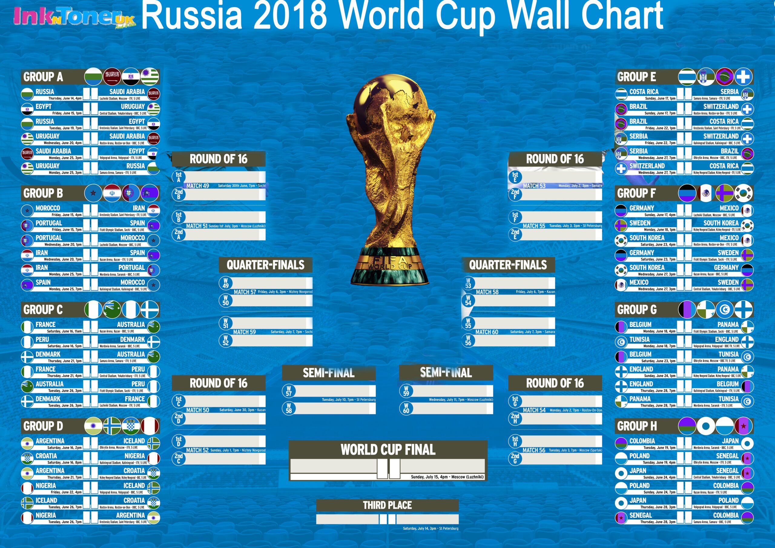 Printable FIFA World Cup 2018 FREE Wallchart PDF Download Worksheets Library
