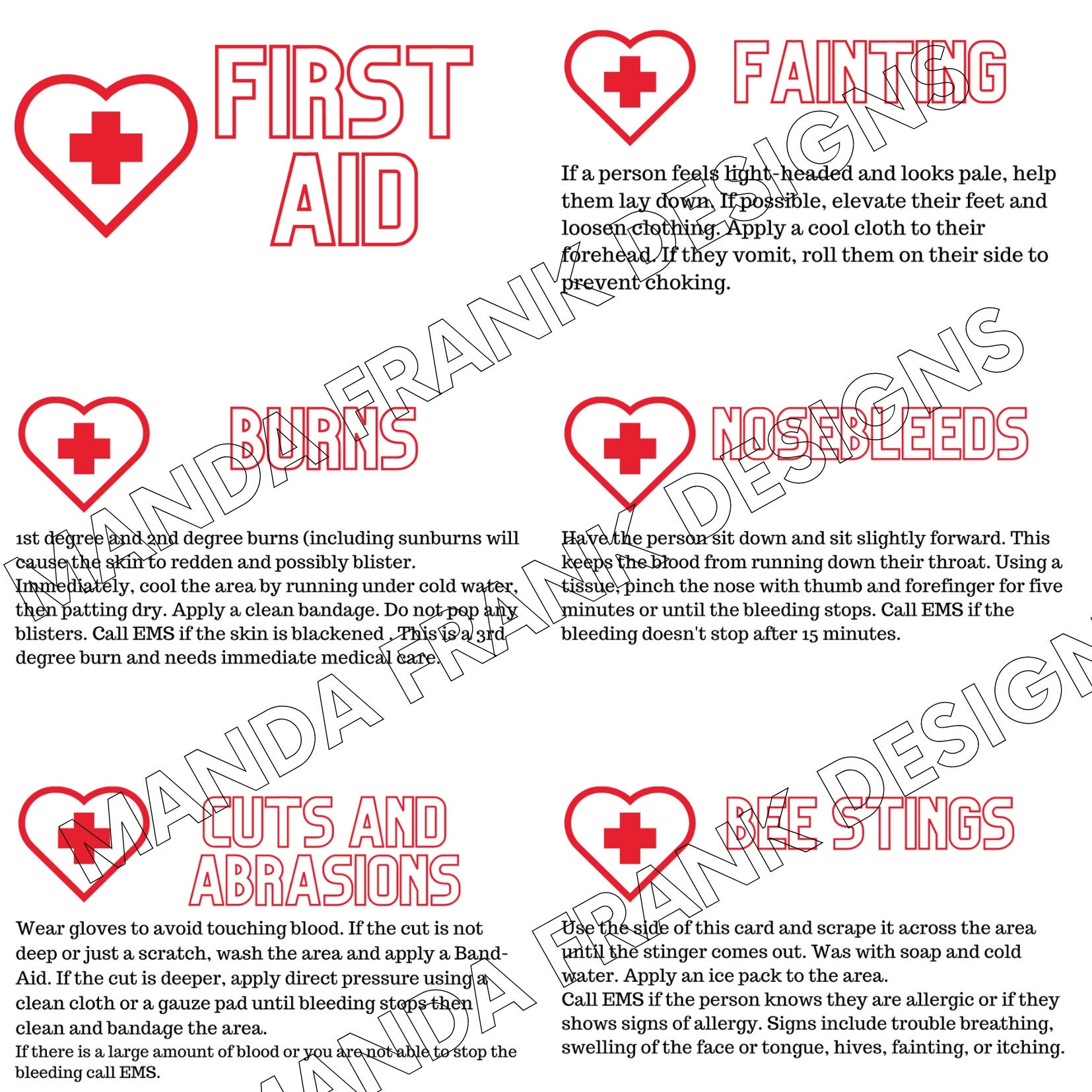 first aid cards printable
