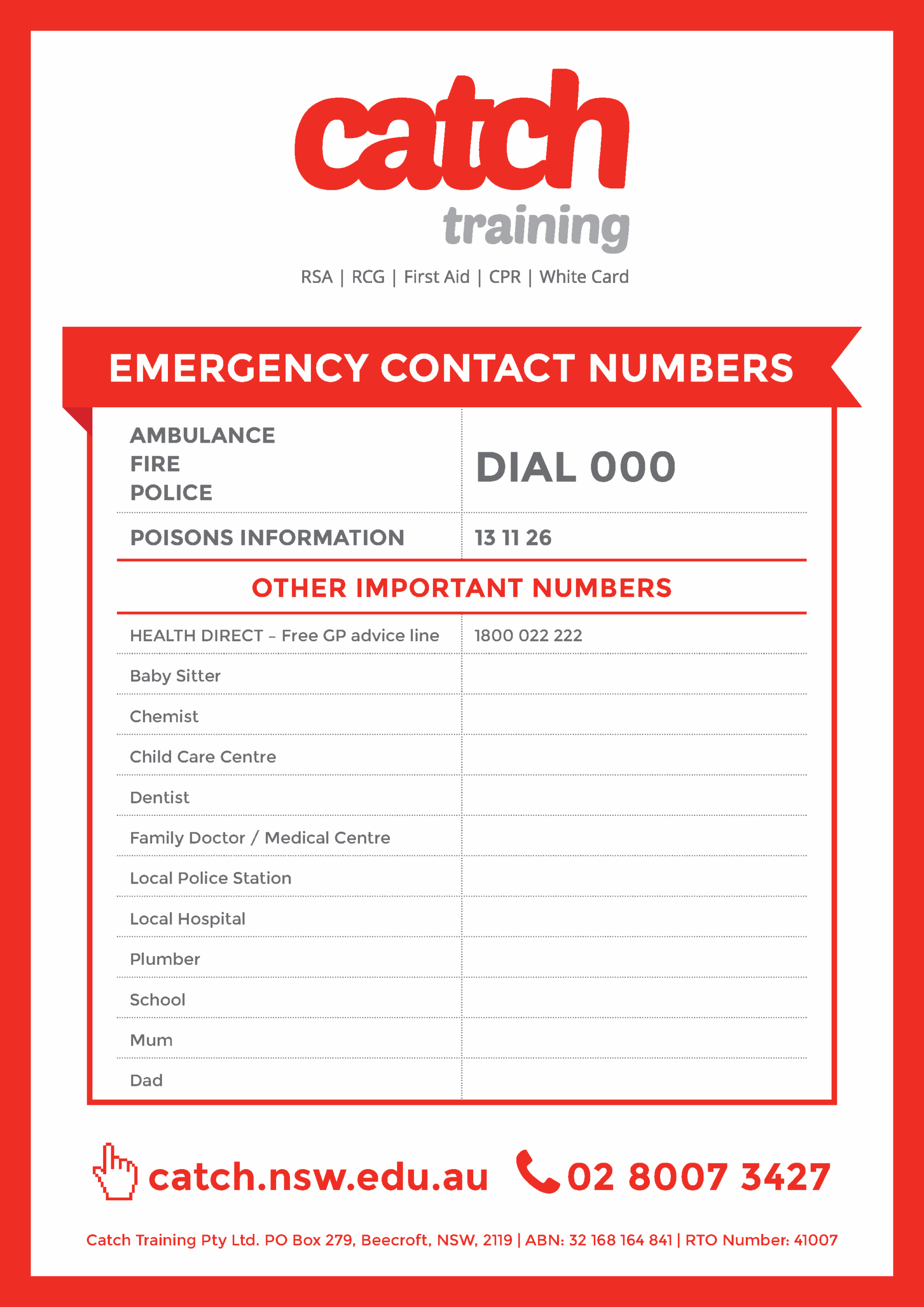 First Aid Posters Catch Training Institute