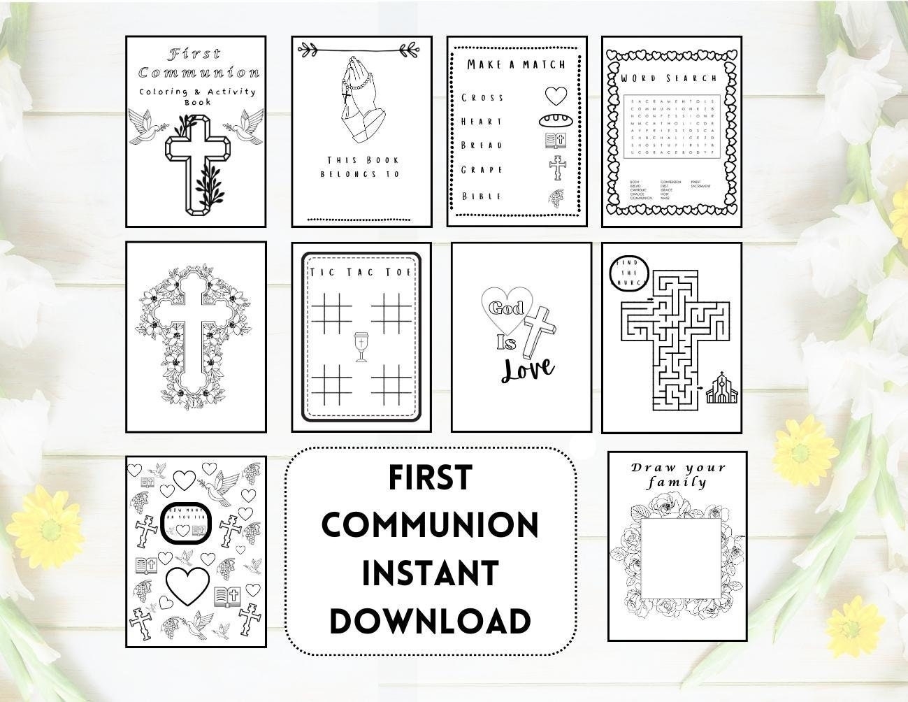 First Communion Activity Book Coloring Pages Communion Favors Christening Day First Communion Favors 1st Holy Communion Coloring For Kids Etsy