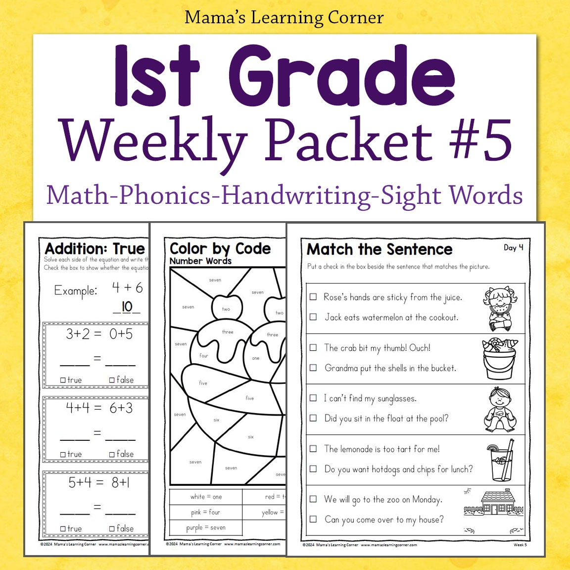 1st Grade Weekly Worksheet Packet 5 Mamas Learning Corner