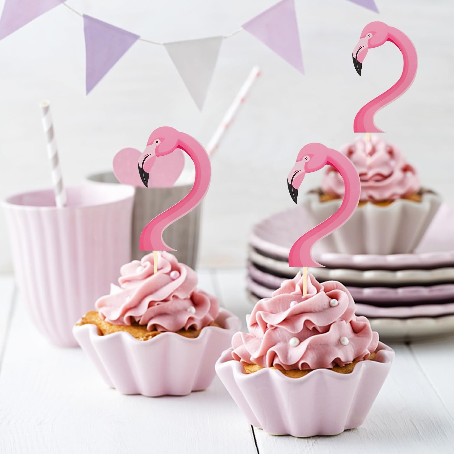 These adorable toppers come in a variety of designs, from simple flamingo silhouettes to more detailed tropical scenes. You can customize them to match your party’s color scheme or theme, making them a versatile and easy decoration option.