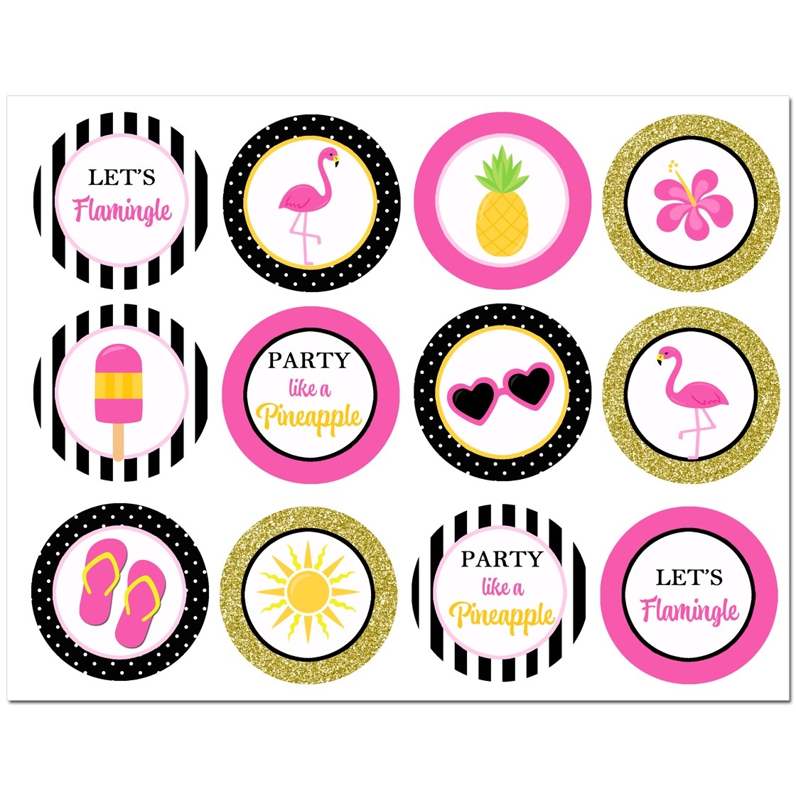 Pink Flamingo Party Cupcake Toppers By That Party Chick Gold Confetti