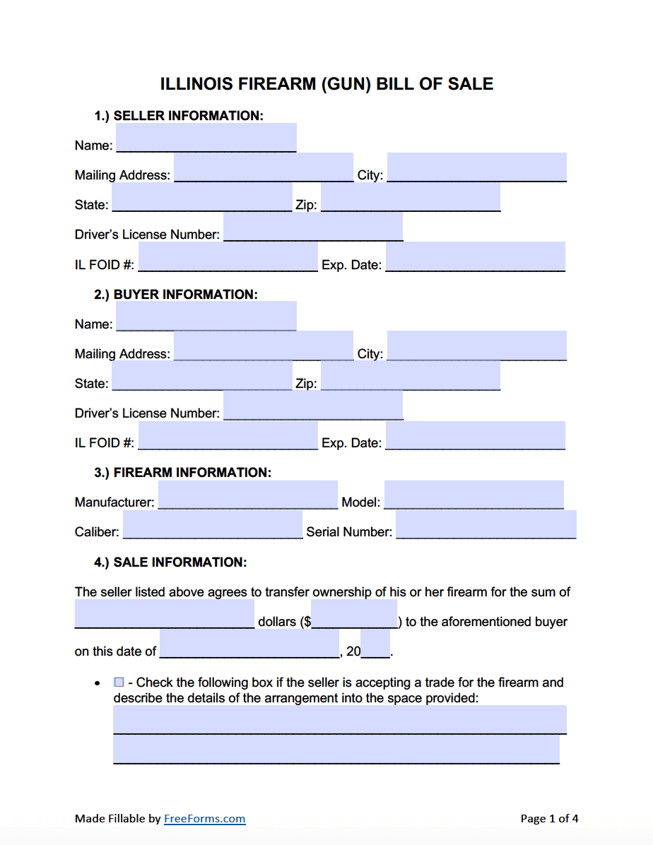 Free Illinois Firearm Gun Bill Of Sale Form PDF Word