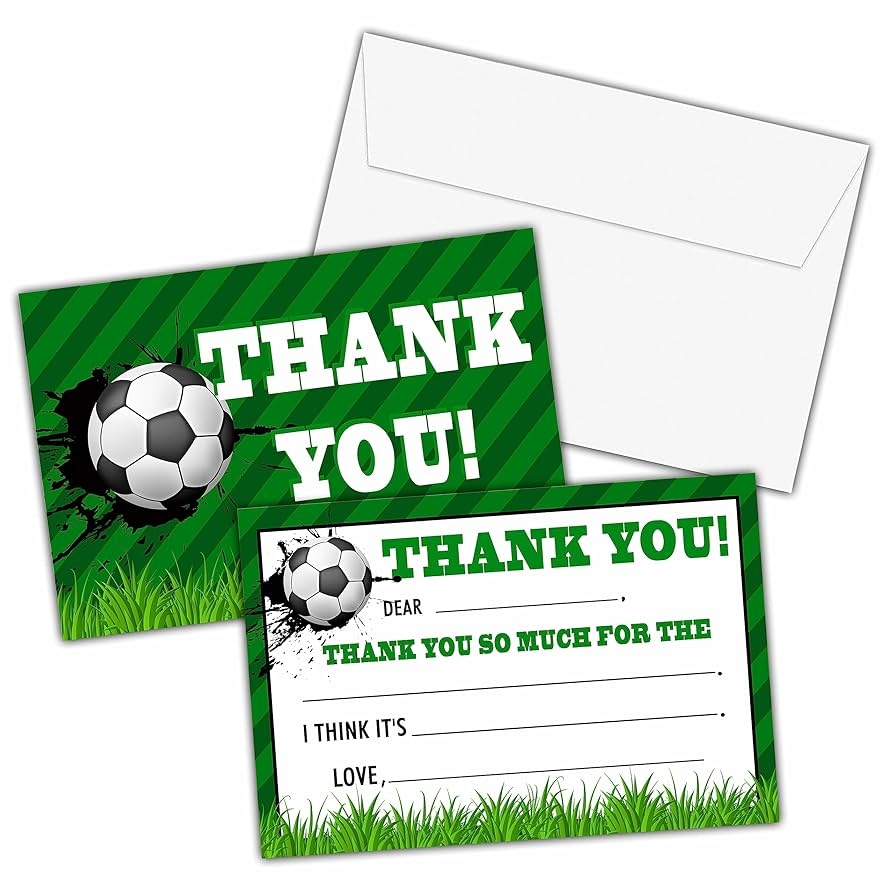 KFNER Soccer Thank You Cards Football Themed Fill In The Blank Thank You Card Thank You Notes For Boys Girls Sport Birthday Party Favors Supplies