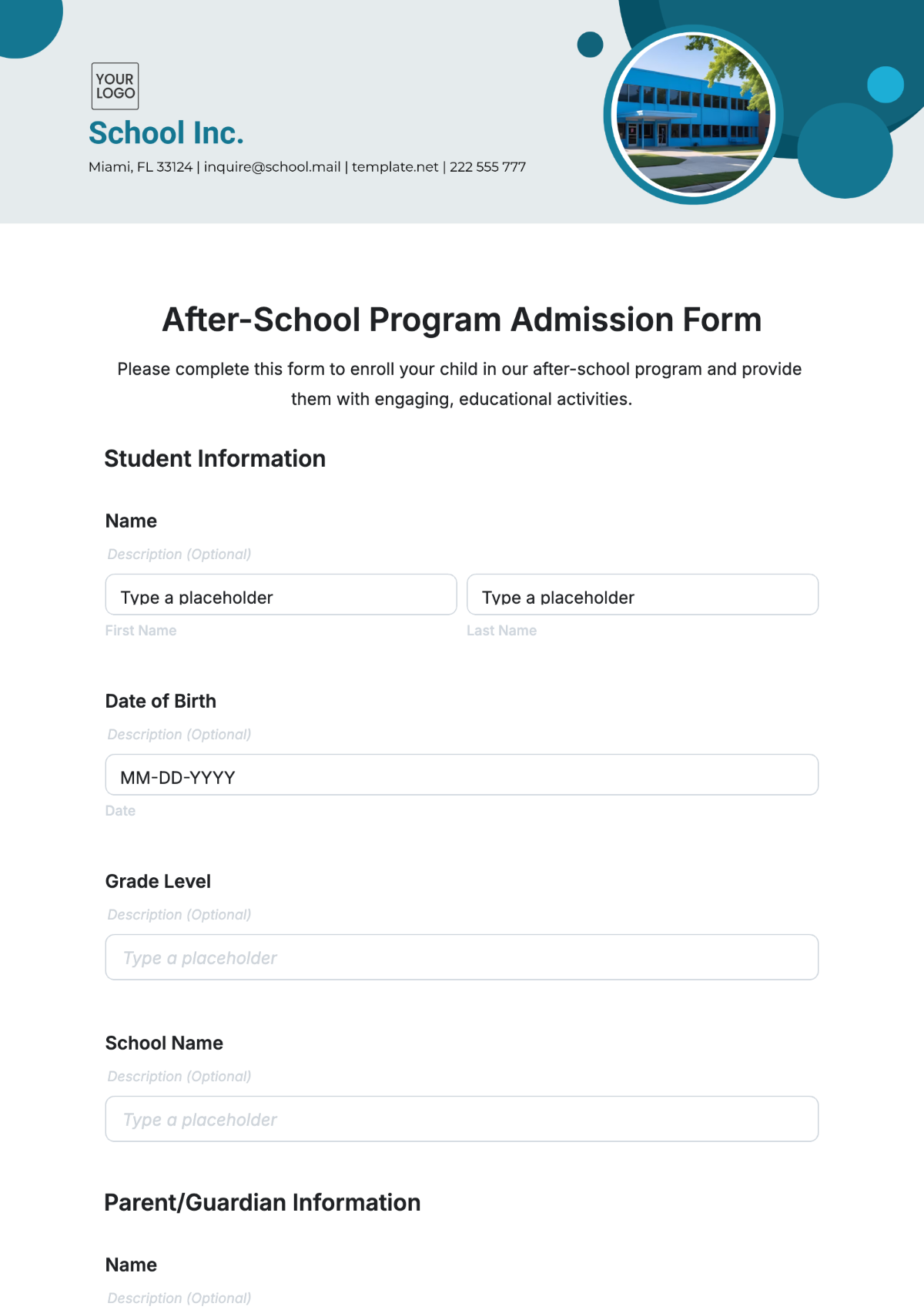 Free After School Program Admission Form Template To Edit Online