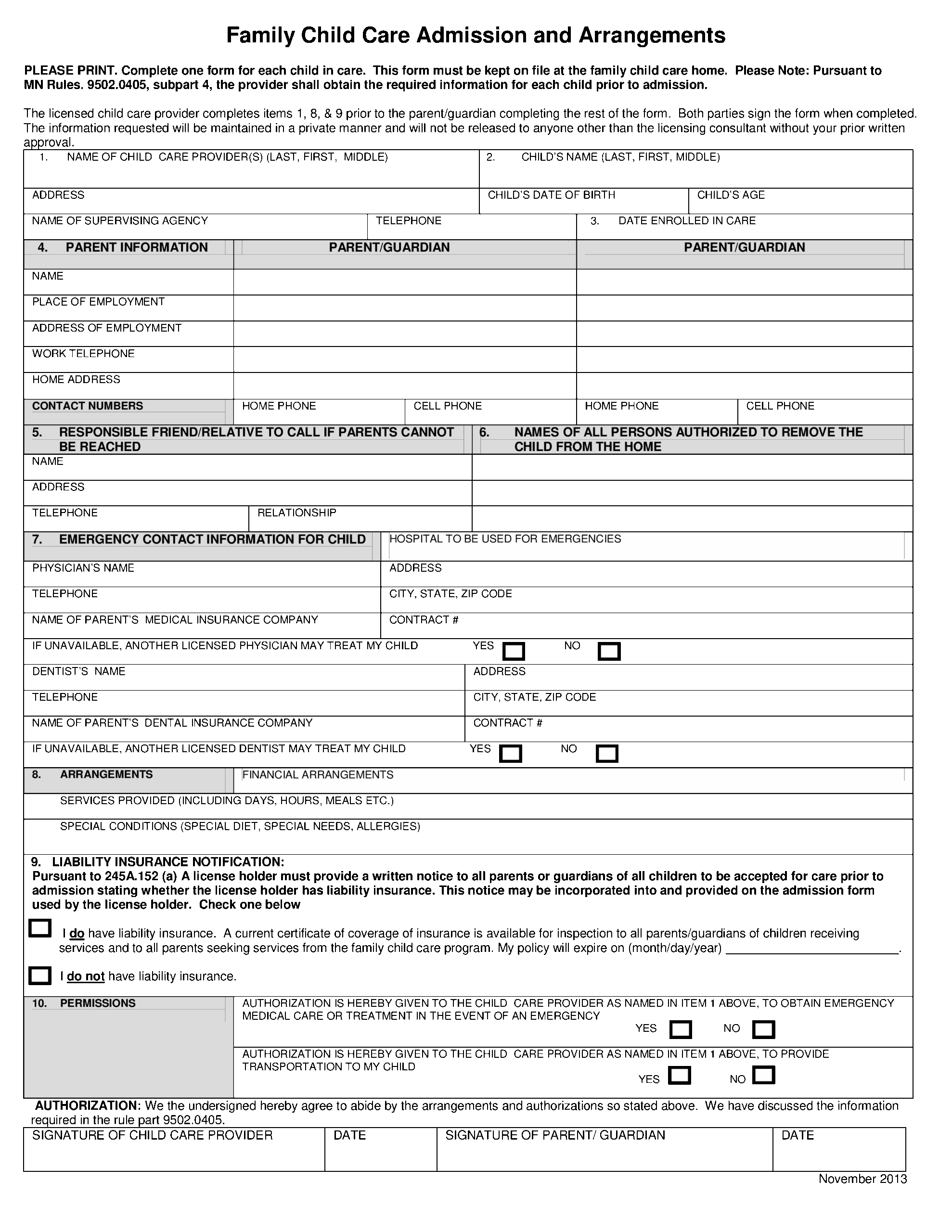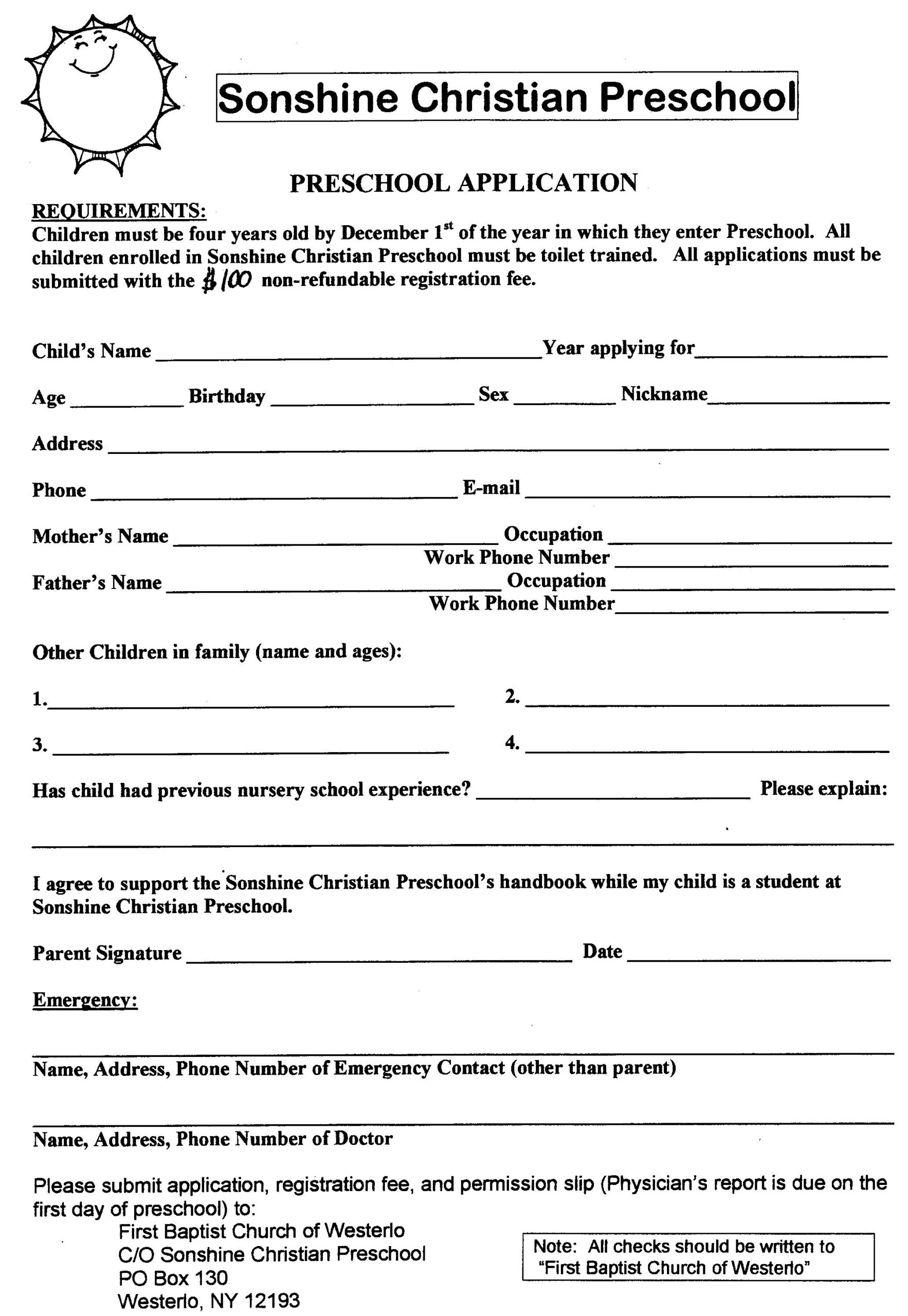 Printable Daycare Application Form For Parents Printable Party Favors