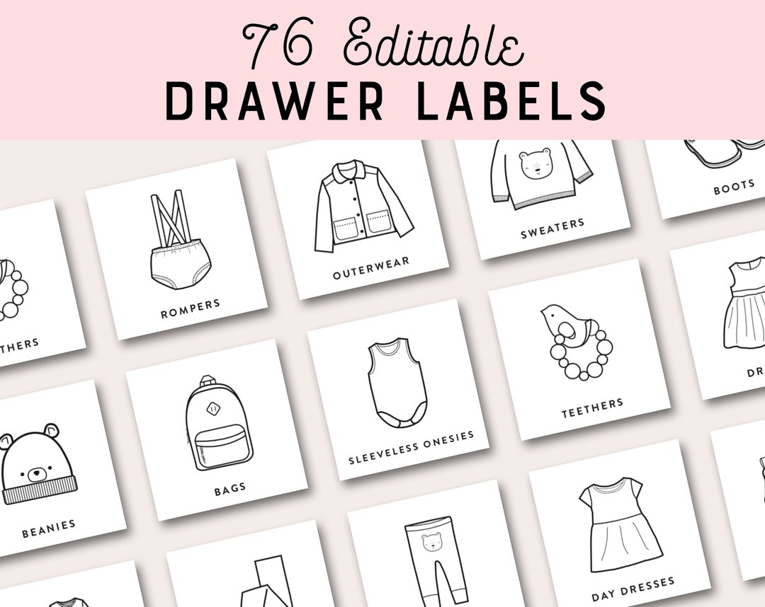 Our printable labels are not only practical but also adorable, adding a cute touch to your little one’s wardrobe. Simply download, print, and stick them on the bins or drawers to keep everything in its place. It’s that easy!