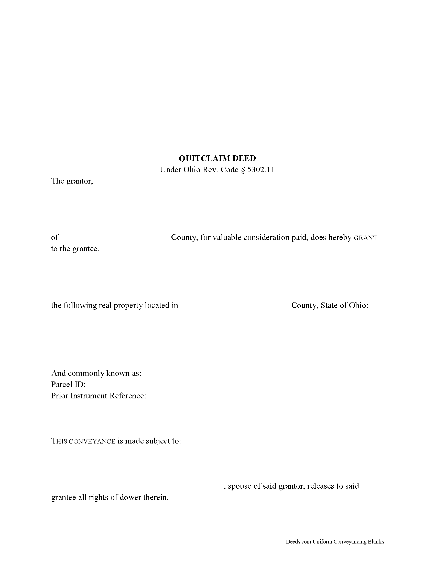 Free Ohio Quitclaim Deed Form PDF Word