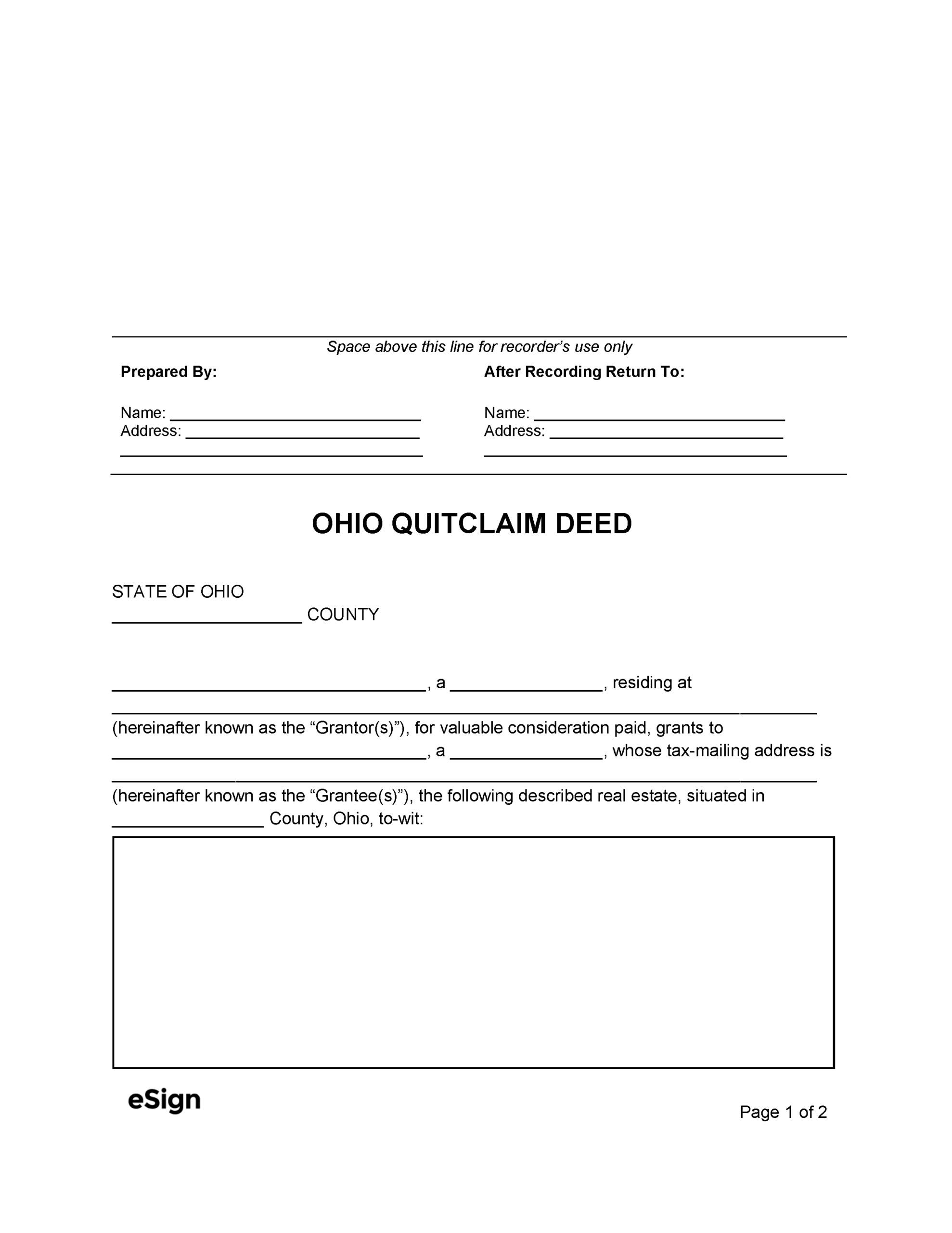 Free Ohio Quit Claim Deed Form PDF Word EForms