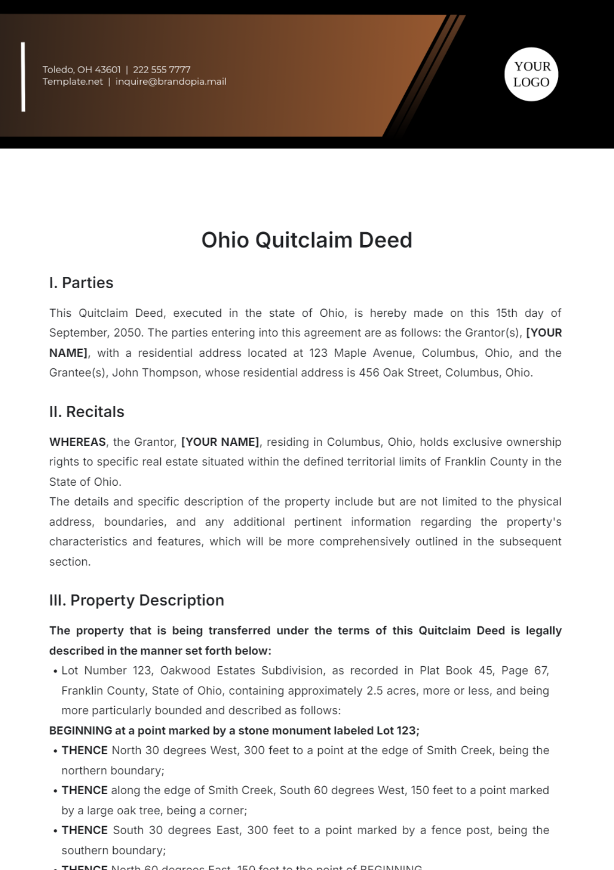 Free Ohio Quitclaim Deed Outline Template To Edit Online