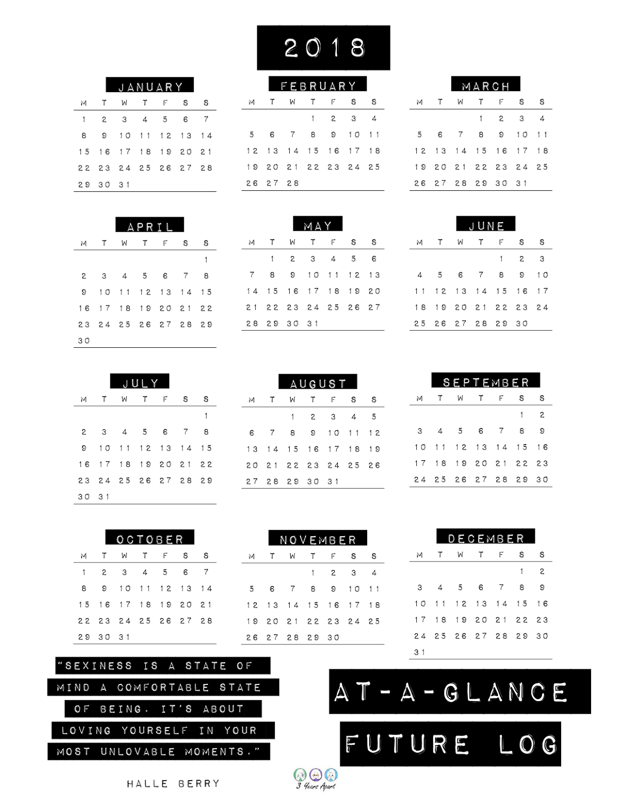 2018 Yearly At a Glance And Future Log Printable Free Download Bullet Journal And Planner Printables 3 Years Apart