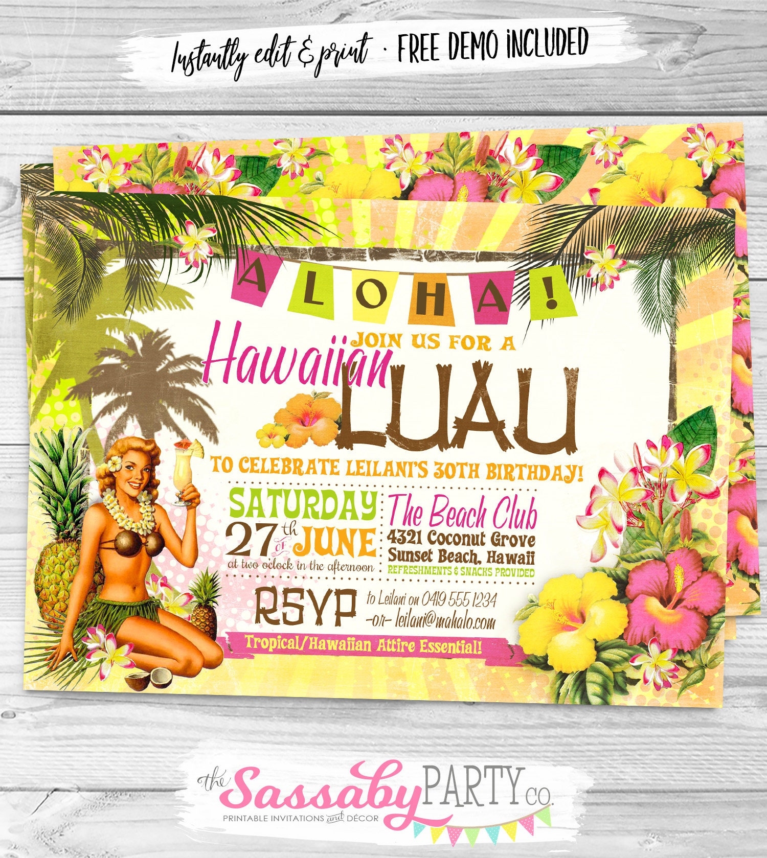 Hawaiian Luau Party Invitation INSTANT DOWNLOAD Edit U0026 Print Yourself Beach Tropical Summer Invite BBQ Birthday Pool Hawaii Surf Etsy