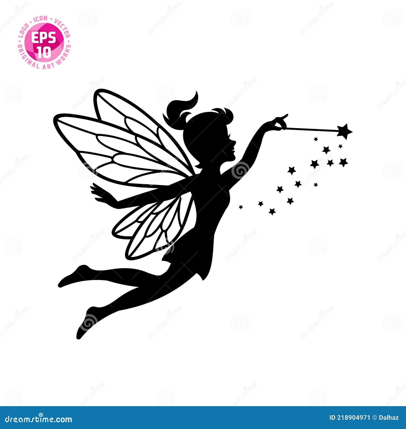 Beautiful Fairy Silhouette Vector Template D Stock Vector