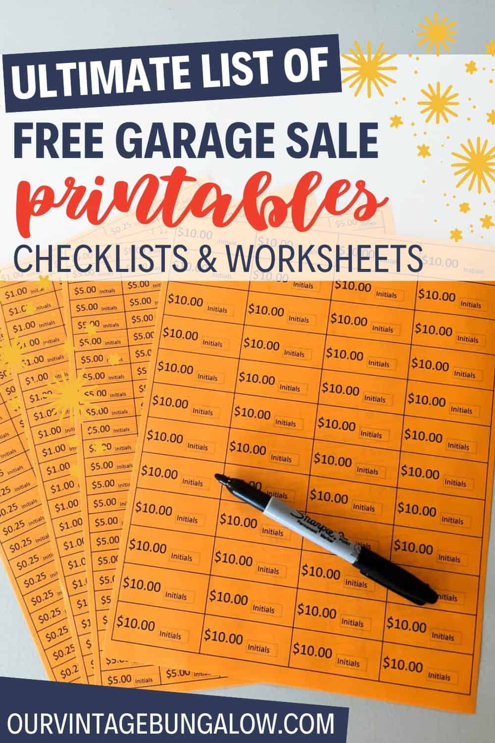 Ultimate List Of Free Garage Sale Printables Checklists And Worksheets Our Vintage Bungalow