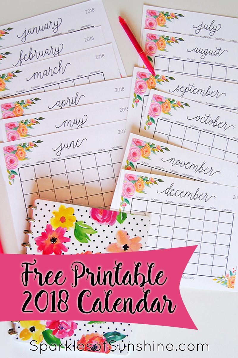 Free Printable 2018 Monthly Calendar With Weekly Planner Sparkles Of Sunshine