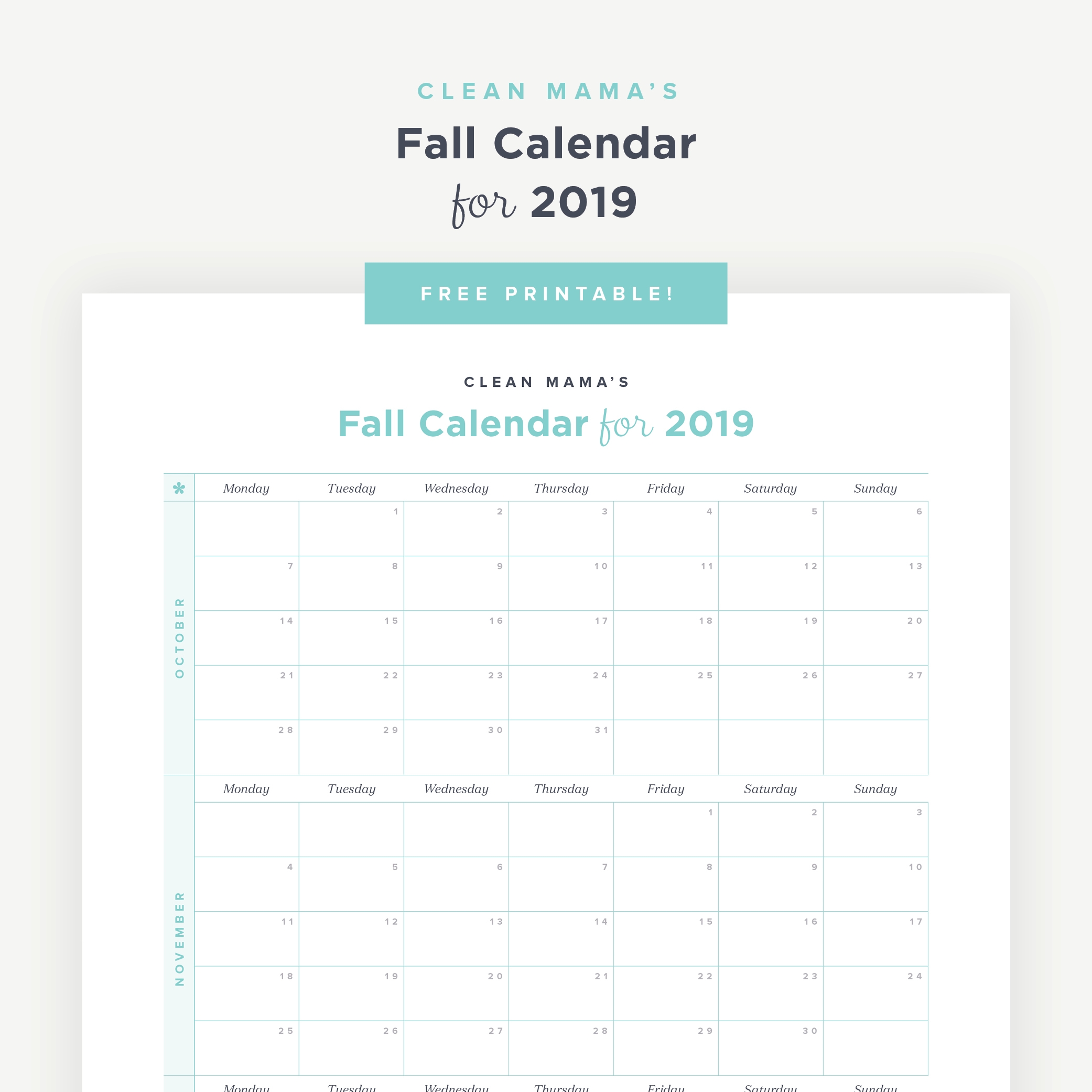 Free Printable Fall 2019 Calendar Clean Mama