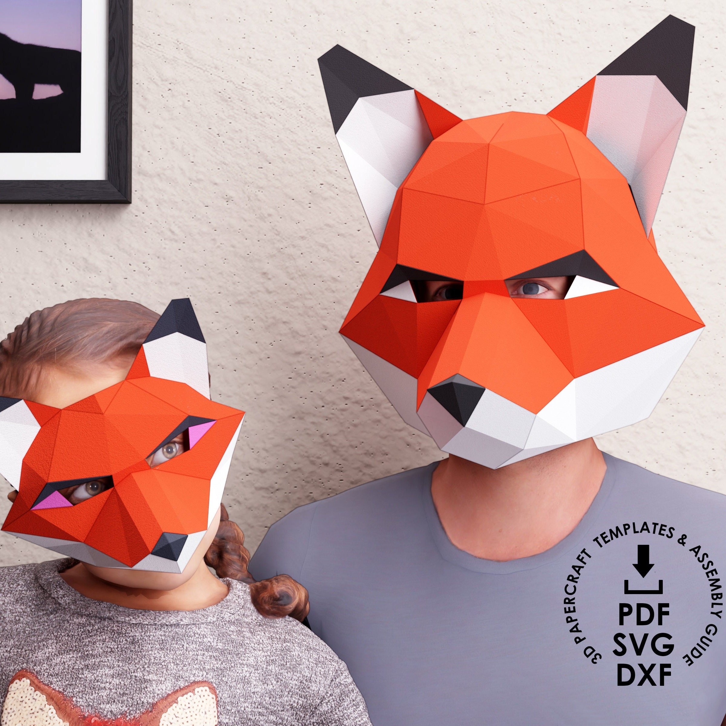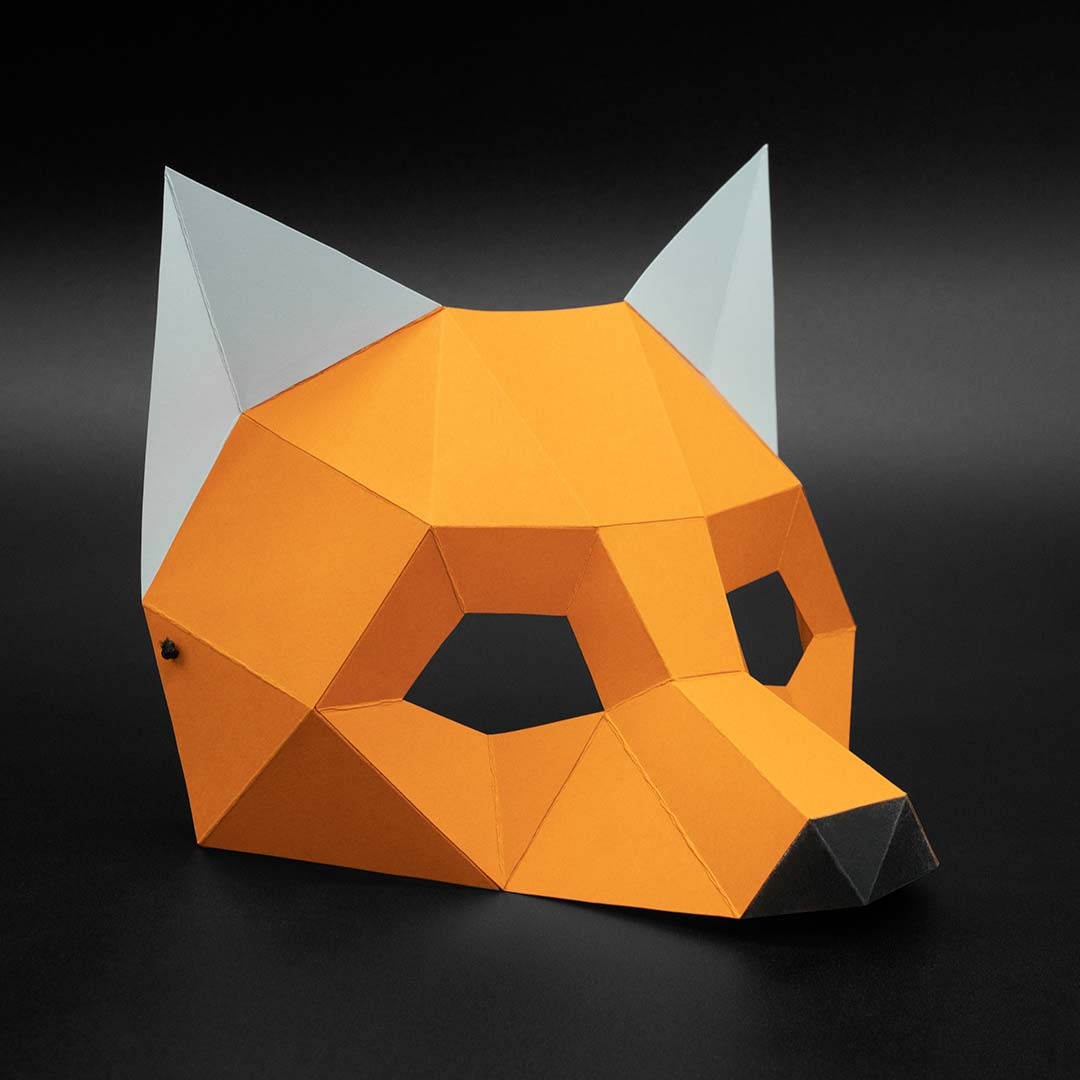 Fox Mask DIY Low Poly Mask Paper Craft Mask Pdf Template 3D Mask LACRAFTA