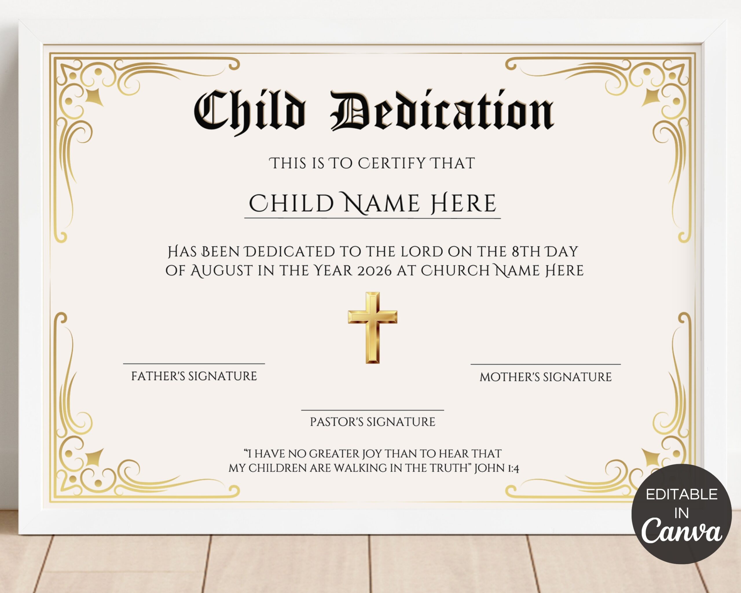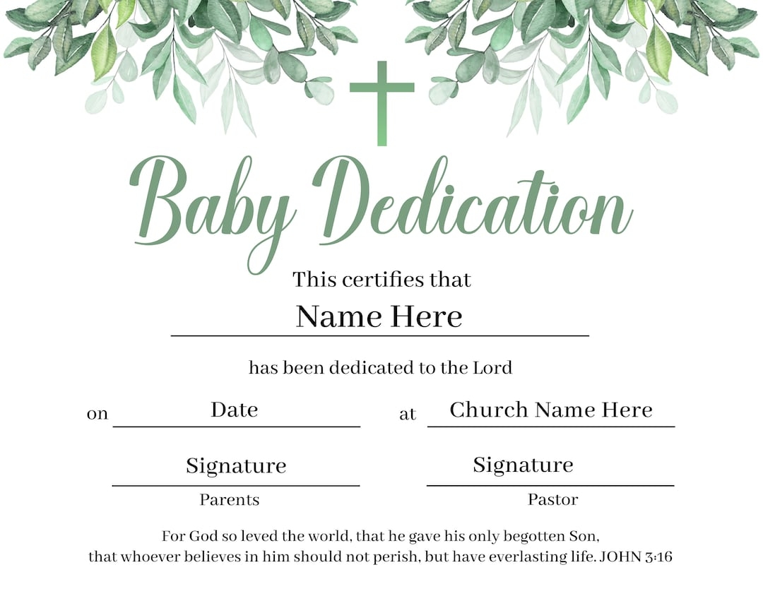 Whether you are hosting a formal dedication ceremony or a more intimate gathering with family and friends, a baby dedication certificate is a thoughtful touch that will add a personal and meaningful element to the occasion.