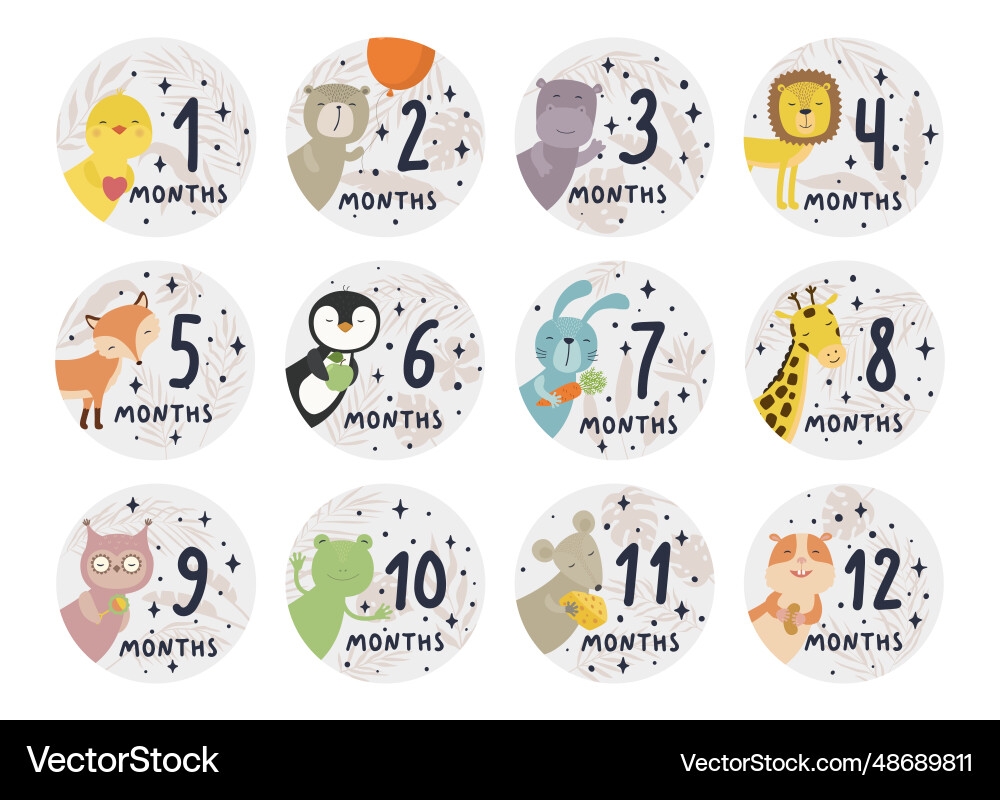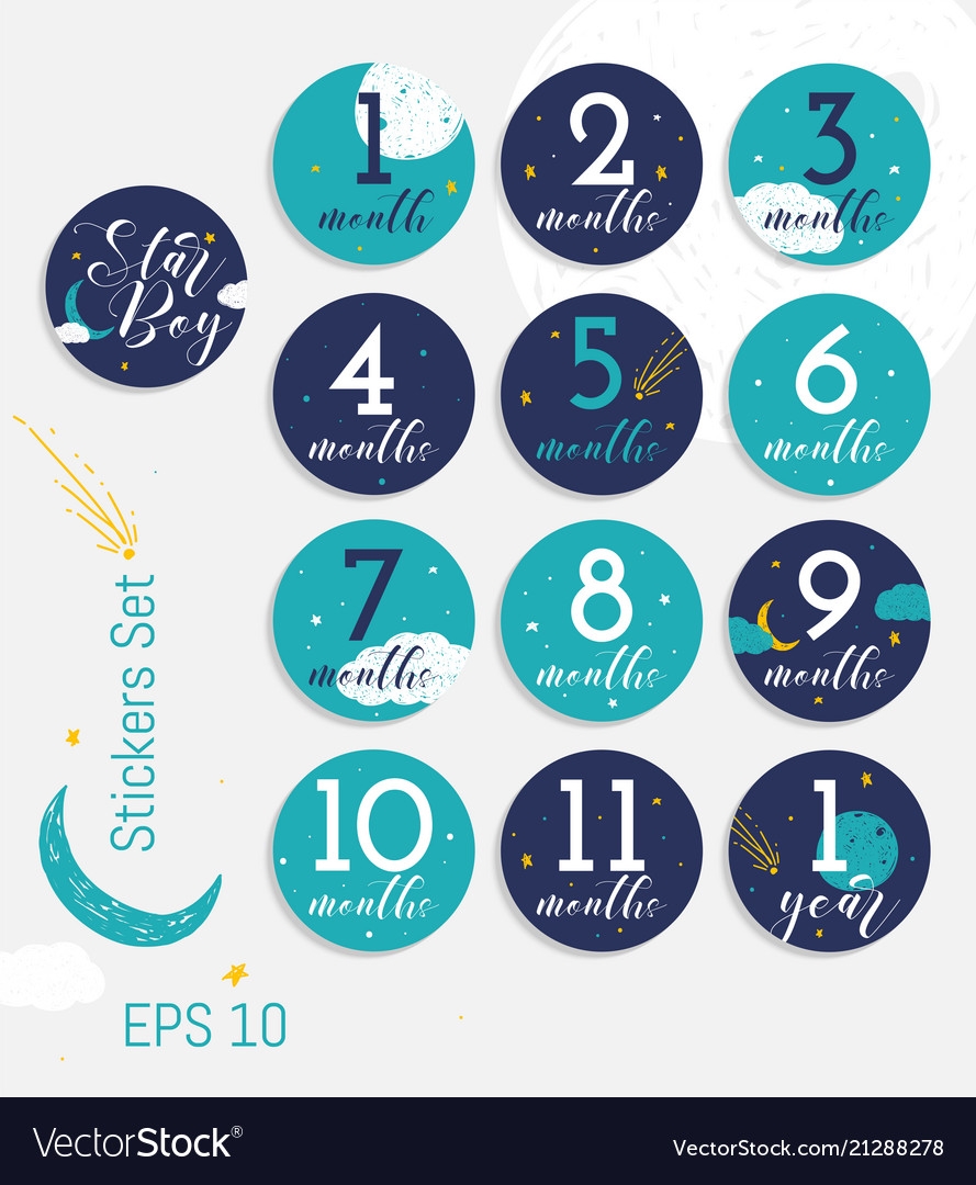 Monthly Baby Milestone Stickers For Boy Royalty Free Vector