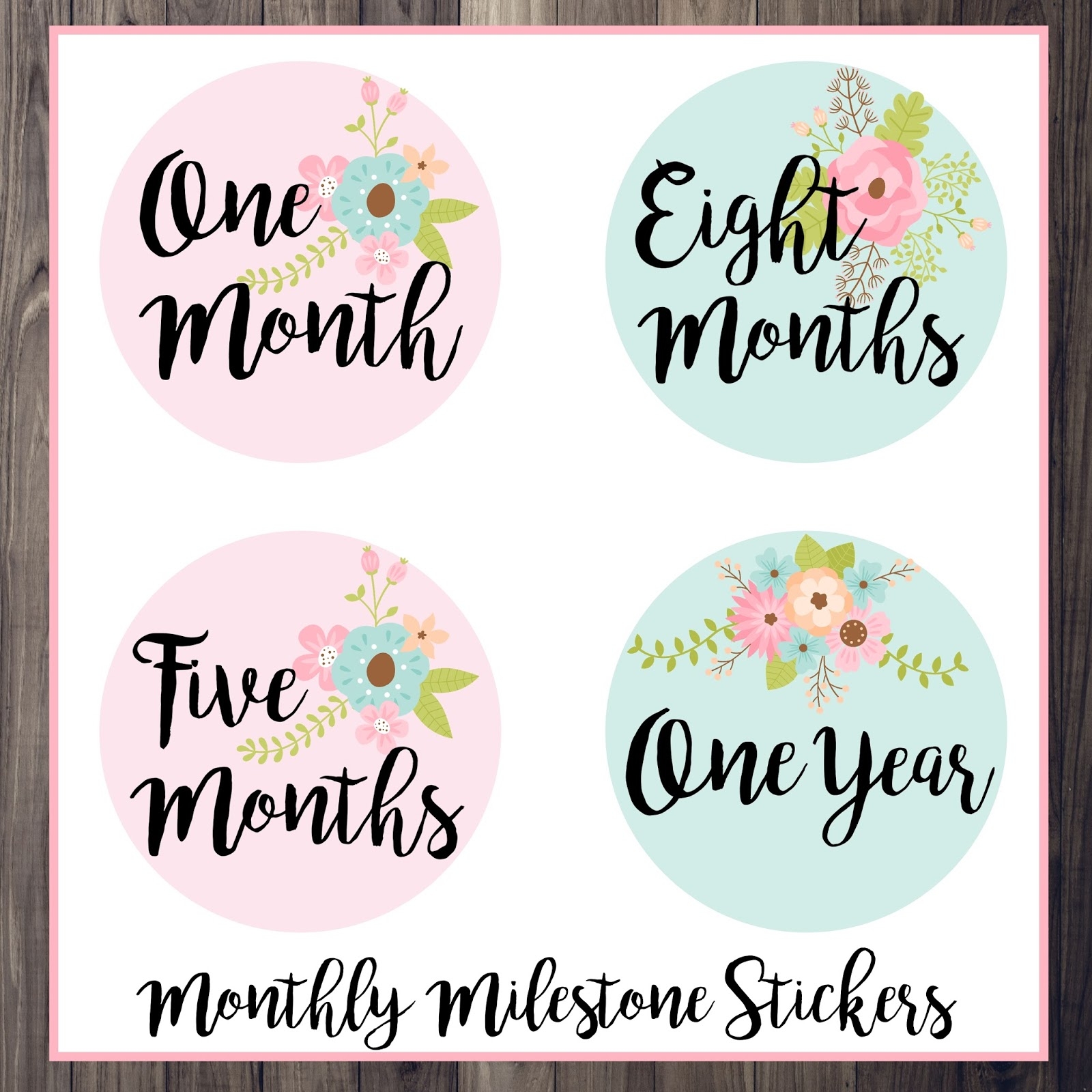 Printable Floral Wreath Baby Monthly Milestone Stickers Girl First Year Belly Month Signs 1 12 Months Cards Baby Shower Instant Download Etsy