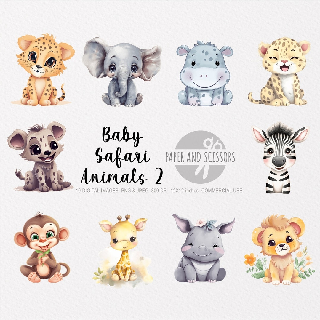 Baby Safari Animals Clipart Baby Safari Animals PNG Animals Illustration Cute Animals Clipart Nursery Decor Art Nursery Wall Art PNG Etsy
