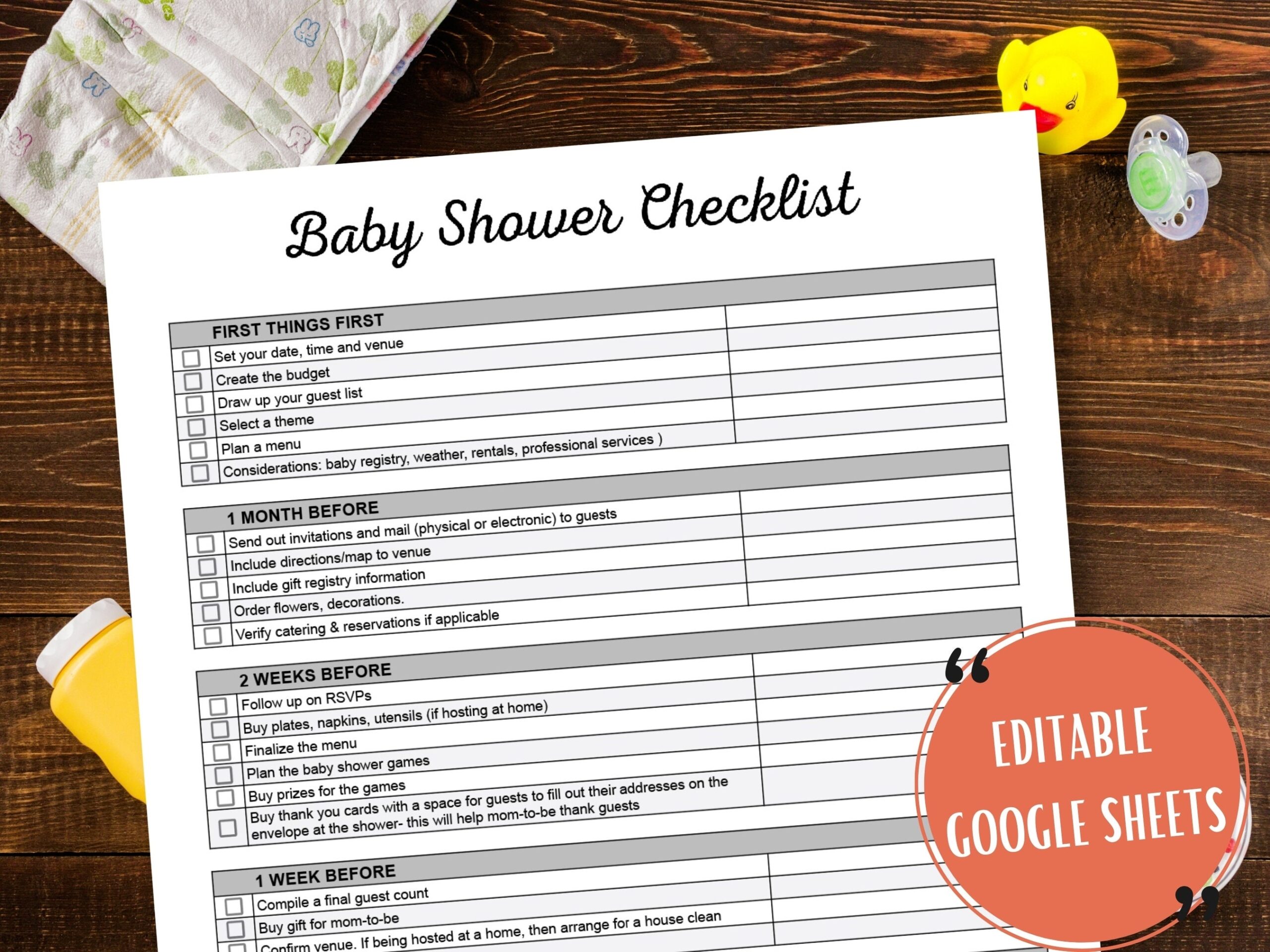 Baby Shower Checklist Editable Google Sheets Template Customizable Baby Shower Planning Template Baby Shower Planner Printable Etsy
