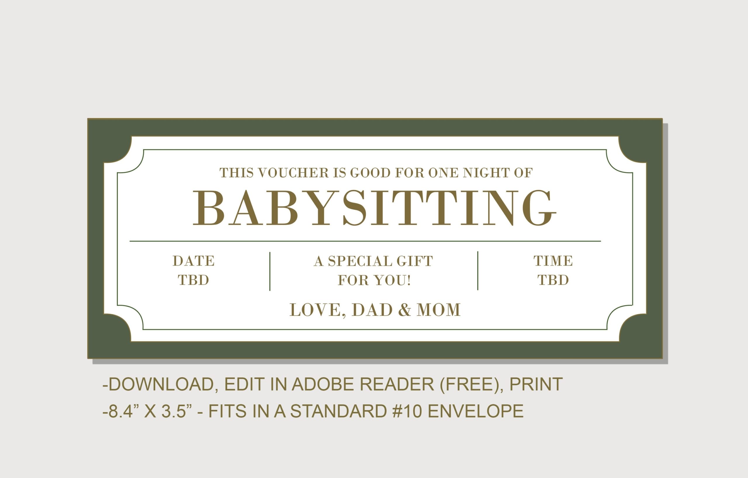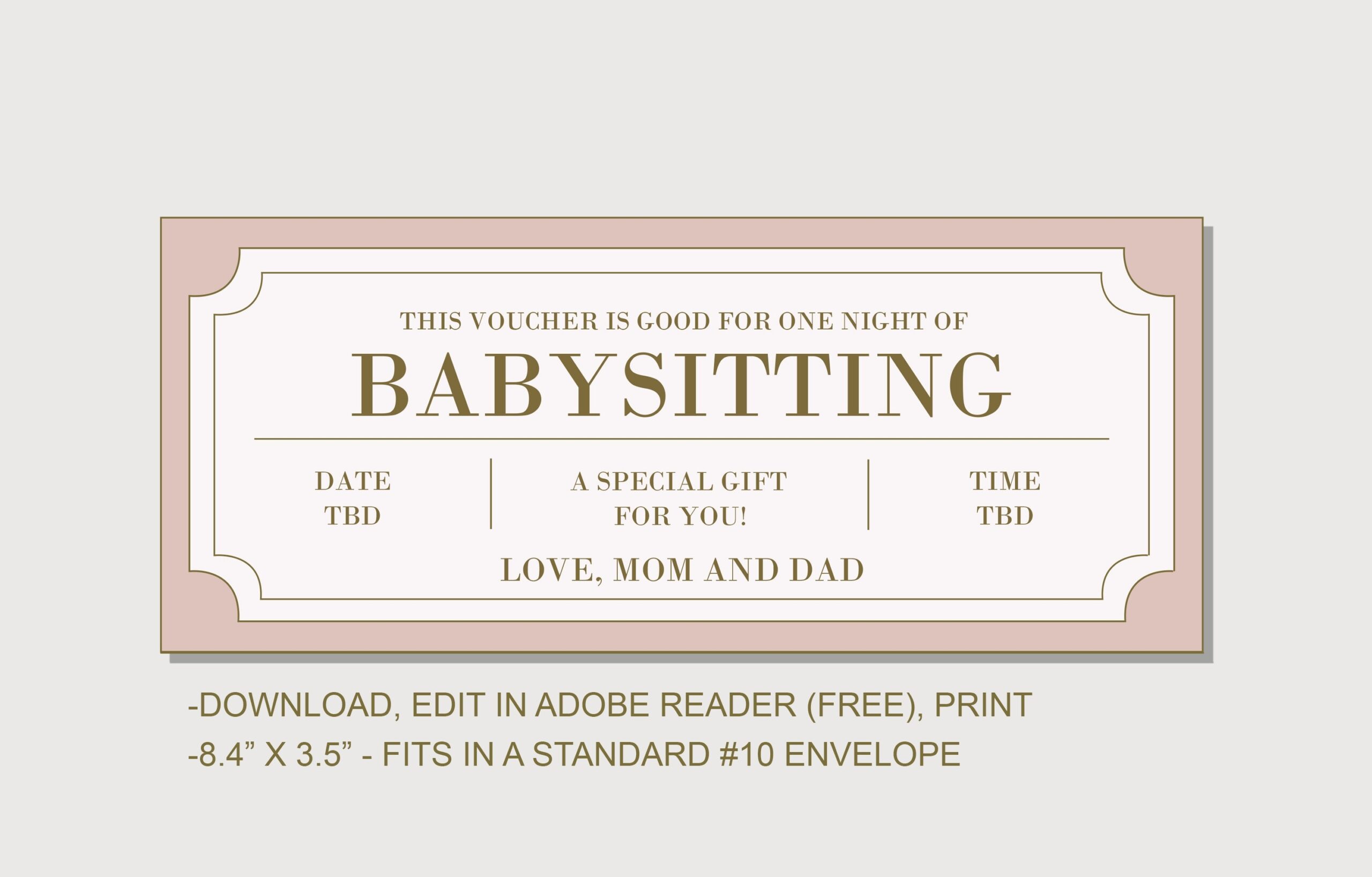 Babysitting Gift Coupon Editable Template Surprise Babysitter Gift Ticket Voucher Custom New Mom Certificate Gift Card Kid Free Printable Etsy
