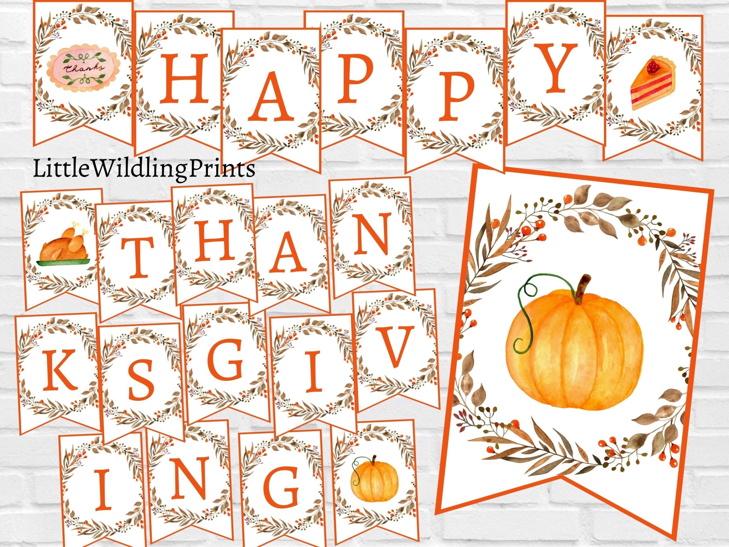 Happy Thanksgiving Banner Printable Thanksgiving Banner File Fall Banner Fall Decor Thanksgiving Garland PDF Printable Banner Etsy
