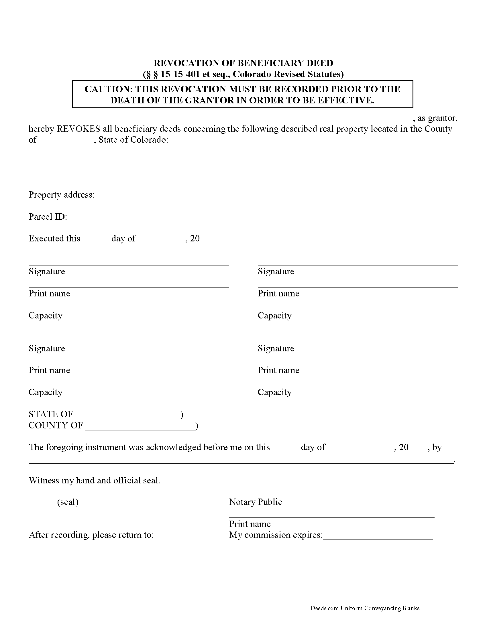 Colorado Beneficiary Deed Revocation Forms Deeds