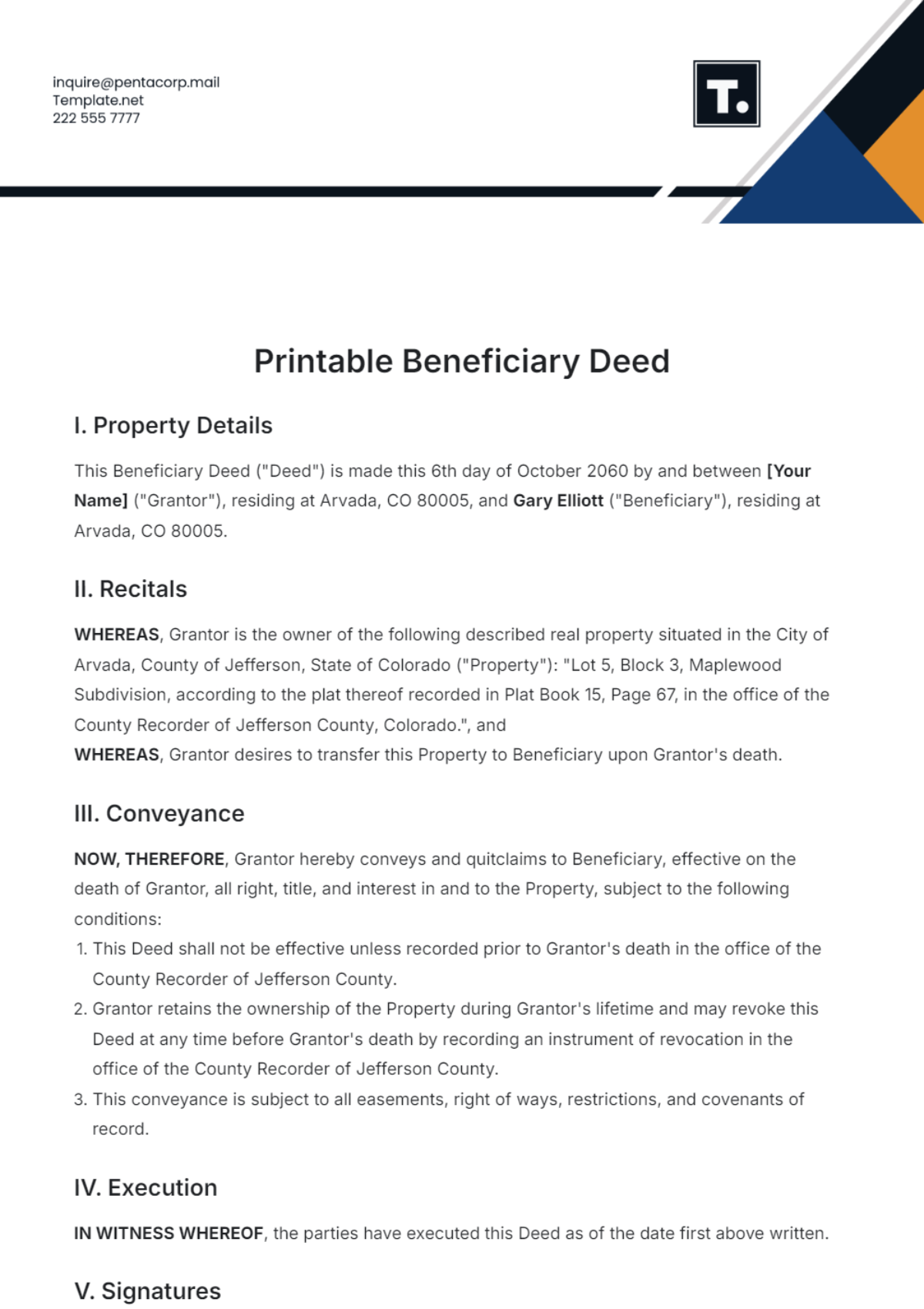 Don’t wait until it’s too late to create a beneficiary deed for your Colorado property. Download our free printable template now and take the first step towards securing your legacy and providing for your loved ones.