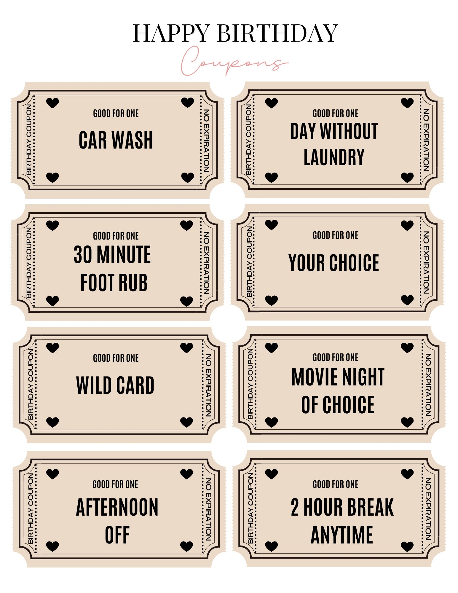 Printable Birthday Coupon Book Template DIY Personalized Coupons
